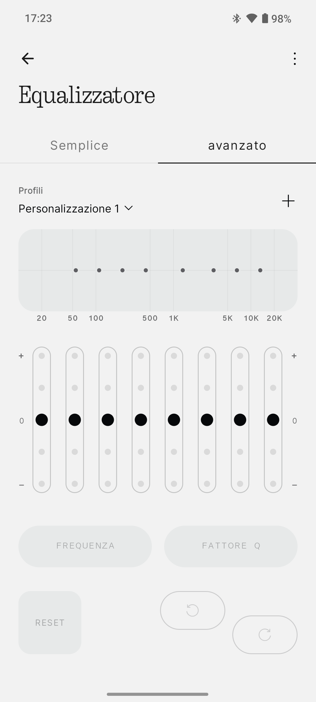 L’equalizzatore integrato è a 8 bande, con la possibilità di scegliere tra preset predefiniti oppure crearne di personalizzati. Si può regolare ogni frequenza in modo indipendente, salvare le configurazioni e persino condividere il proprio profilo audio tramite QR code.