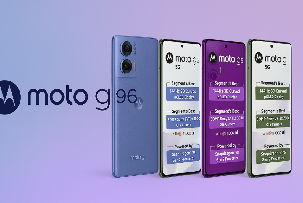 Motorola svela il nuovo Moto G96 5G, pronto al lancio in India il 9 luglio. Il telefono adotta un pannello P-OLED da 6,67 pollici con bordi curvi, risoluzione FHD+ e refresh a 144 Hz. La luminosità di picco tocca 1 600 nit, perciò la lettura all’aperto rimane agevole. A protezione c’è Gorilla Glass 5, mentre il sensore di impronte è integrato sotto il vetro, soluzione ormai tipica dei modelli premium.