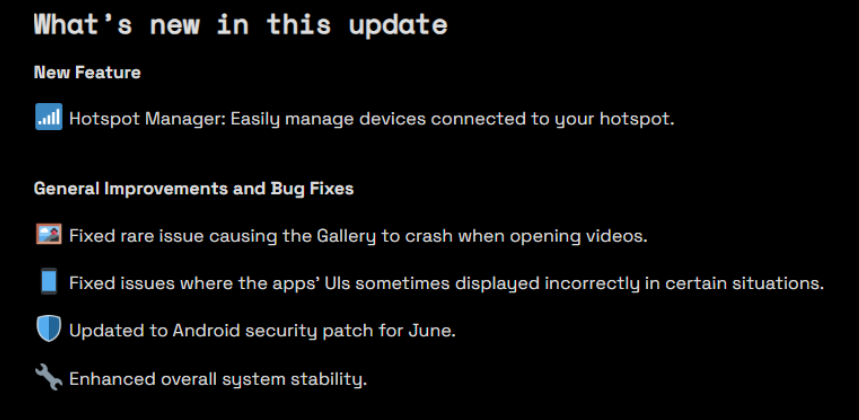 La prima novità degna di nota è il nuovo Hotspot Manager. Si tratta di un pannello di gestione che consente di visualizzare e controllare i dispositivi connessi all’hotspot del telefono in tempo reale. Un’aggiunta utile, soprattutto per chi sfrutta il tethering in mobilità.