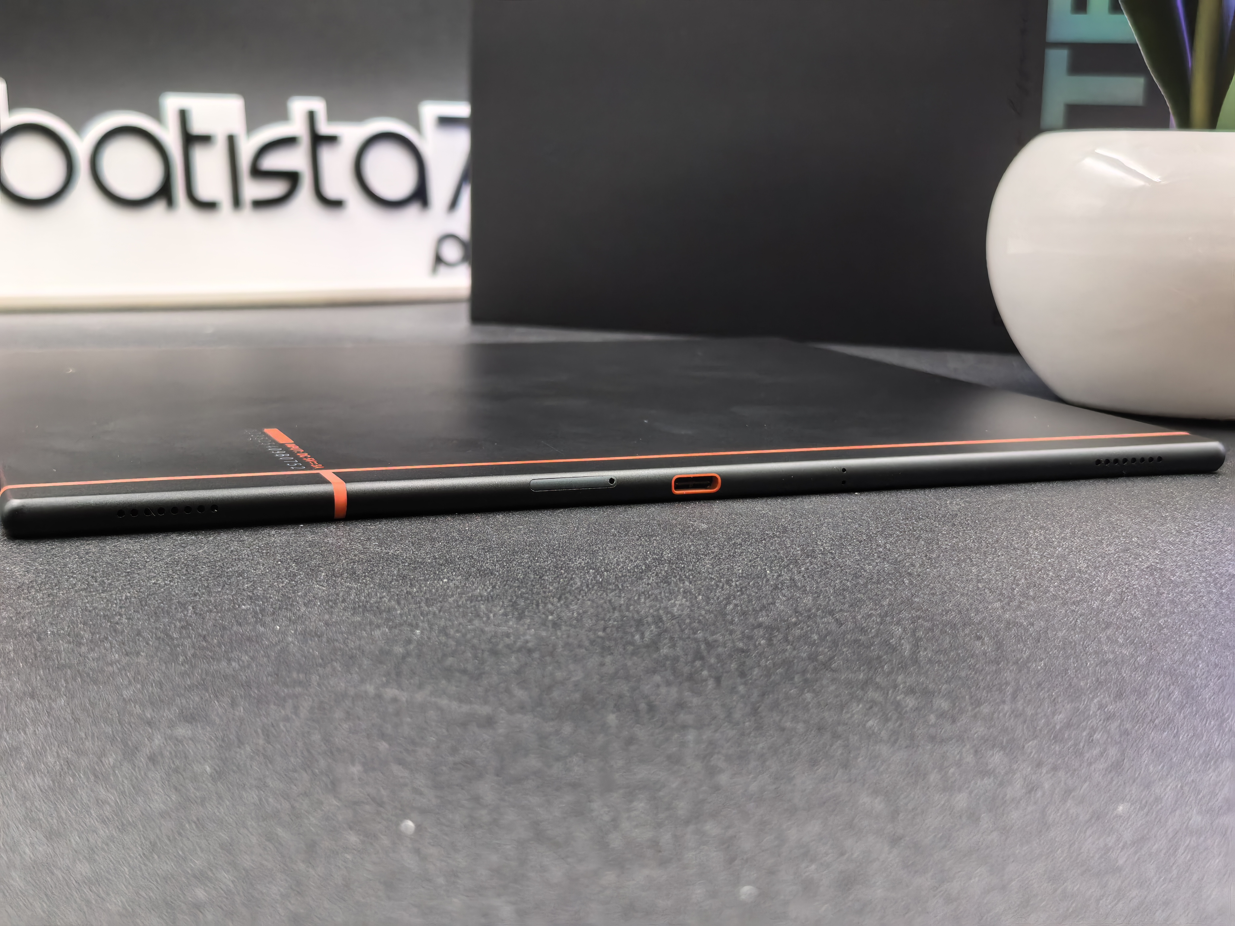 Sulla cornice spessa troviamo la porta USB-C (con supporto OTG) e il tasto di accensione che integra anche un lettore di impronte digitali: veloce, preciso, molto utile se si usano app professionali o si vogliono proteggere documenti sensibili.