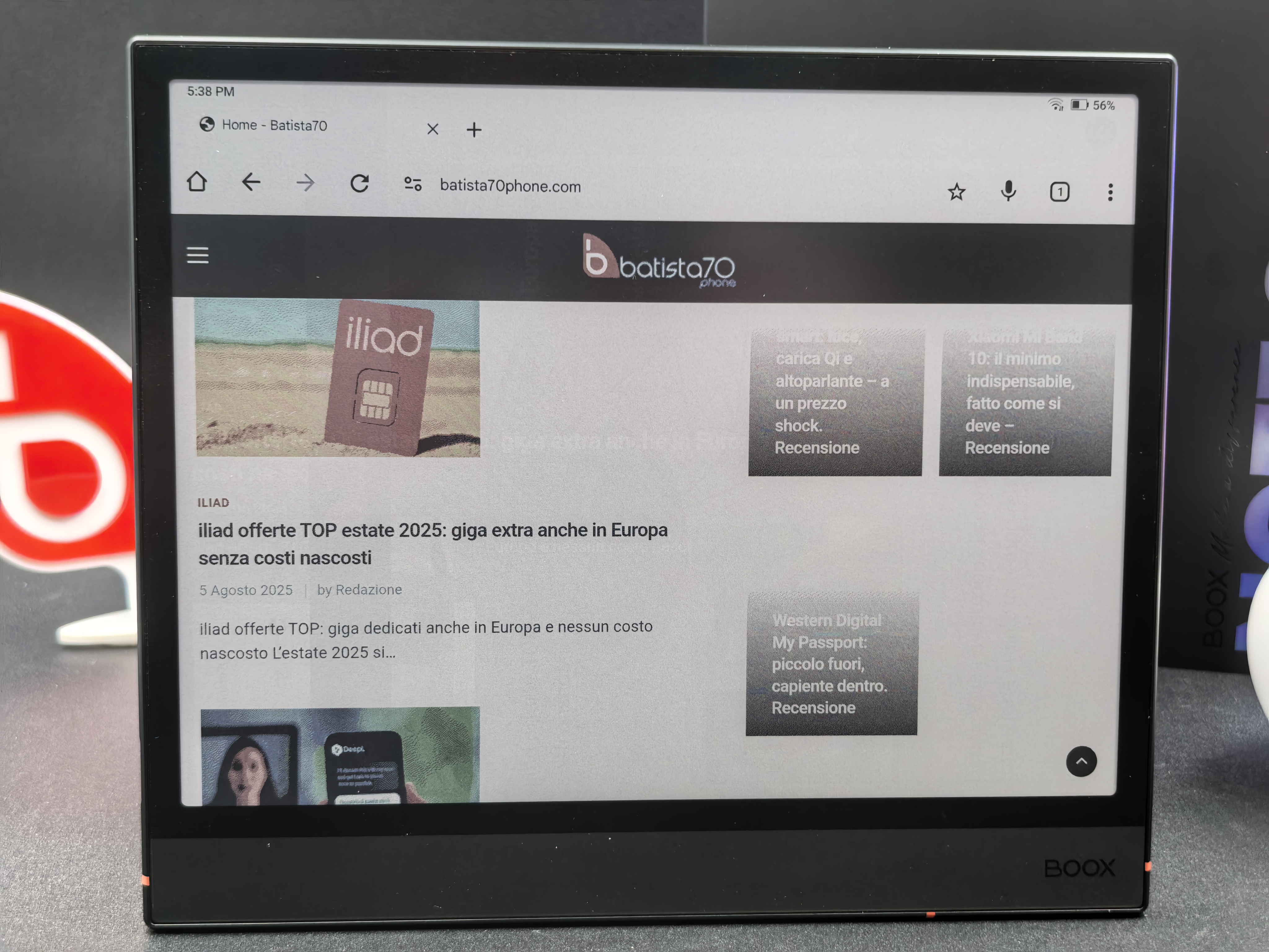 Boox ha anche integrato la tecnologia BSR – Boox Super Refresh, che migliora la velocità di aggiornamento dello schermo in modo sostanziale. Questo permette di scorrere pagine web, navigare file PDF molto pesanti o usare app come Evernote e OneNote con molta meno latenza visiva rispetto ai modelli più vecchi.