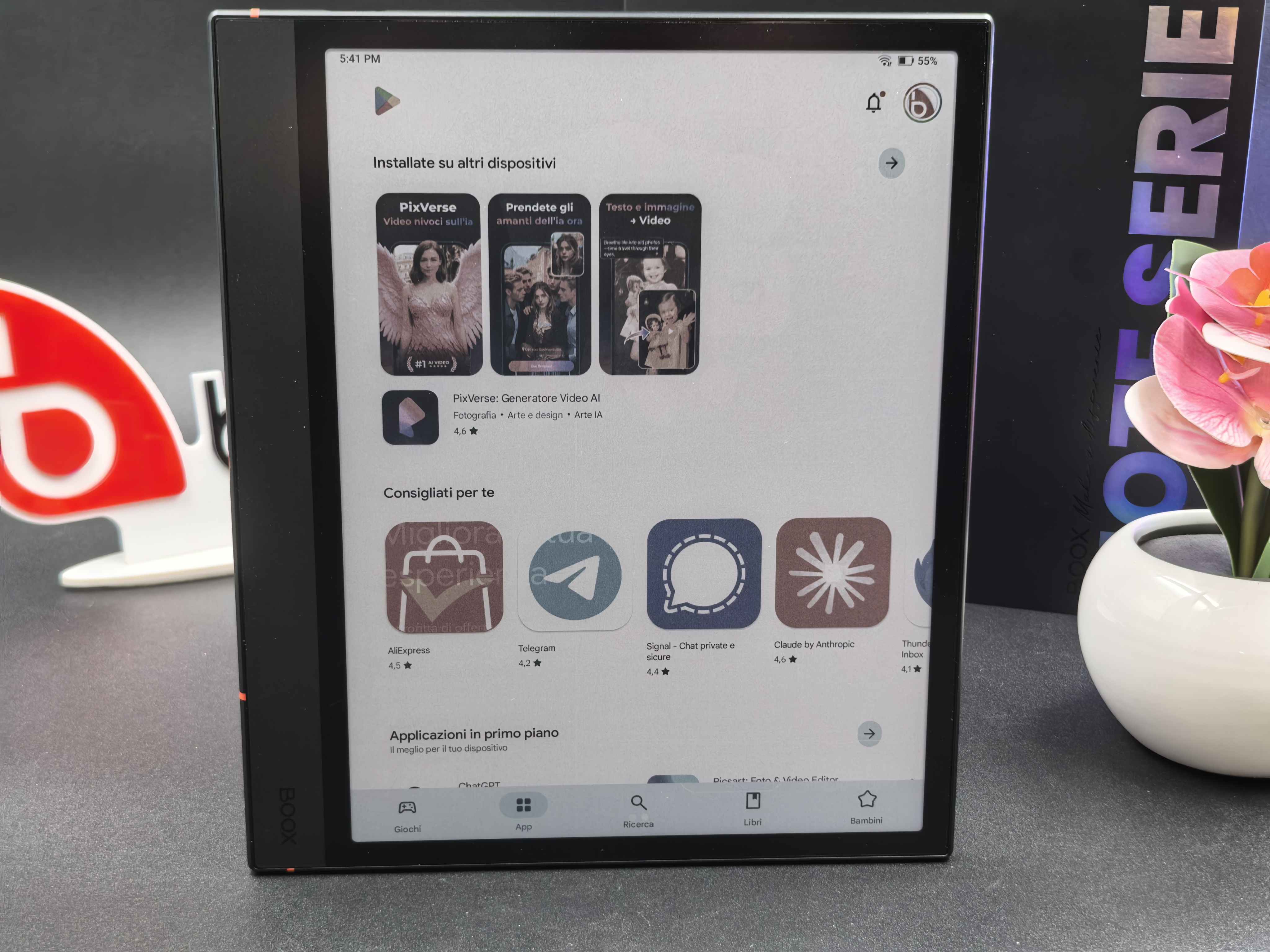 Il prezzo è indubbiamente importante, ma adeguato alla proposta. Ci si trova davanti a uno dei pochissimi dispositivi e‑ink a colori con sistema operativo Android completo e accesso al Play Store, una caratteristica che da sola cambia radicalmente l’esperienza d’uso. L’utente non è vincolato a un ecosistema chiuso, ma può scegliere liberamente quali app installare, come lavorare, dove archiviare e sincronizzare i propri contenuti.