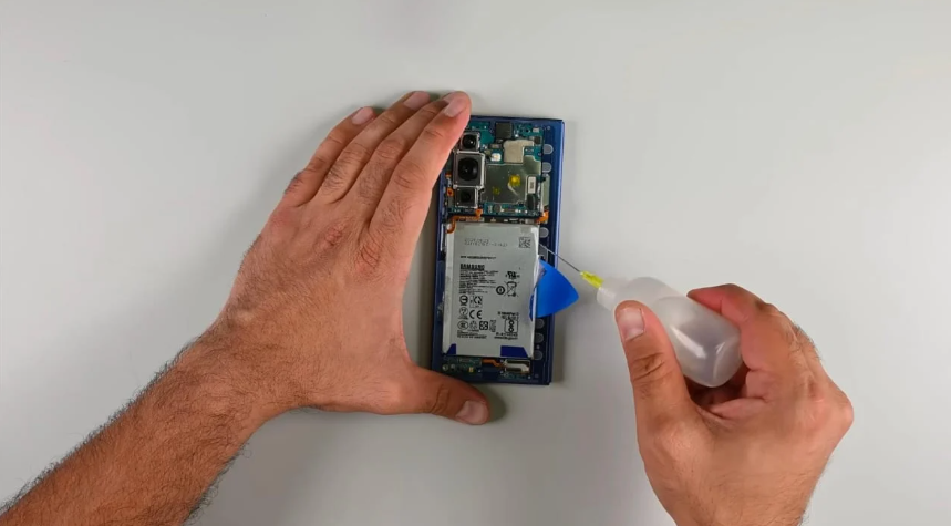 - La batteria è incollata saldamente, rendendo la sostituzione complicata. A differenza di Galaxy S25 Ultra, non ci sono linguette adesive semplificate.