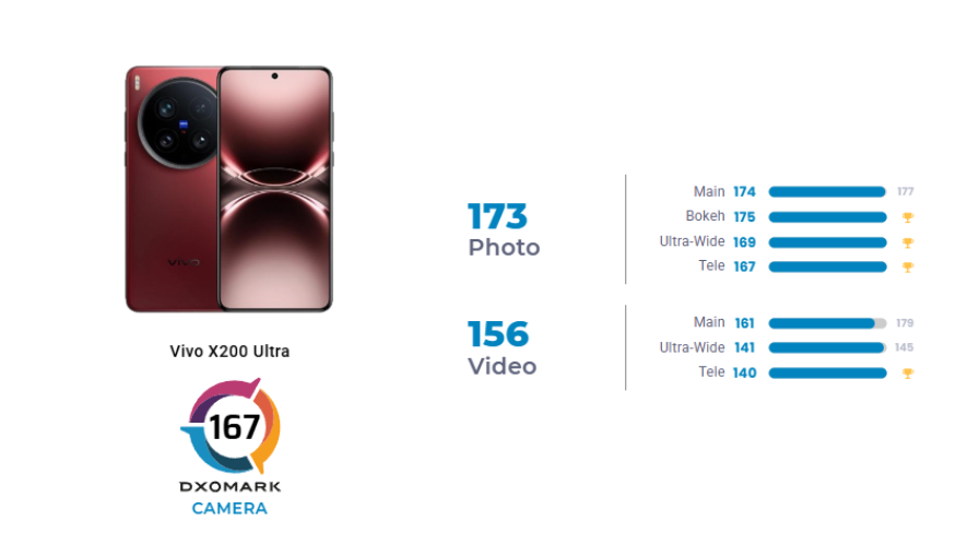 vivo X200 Ultra ha ottenuto un punteggio impressionante di 167 punti nel benchmark DXOMARK Camera, posizionandosi al secondo posto nella classifica globale, subito dopo OPPO Find X8 Ultra. Con 173 punti in fotografia e 156 punti in video, si distingue per la sua qualità complessiva e per alcune scelte tecniche di rilievo.