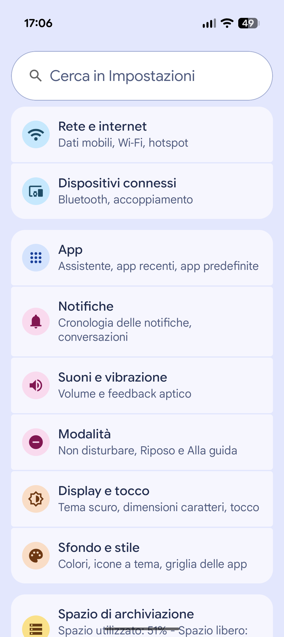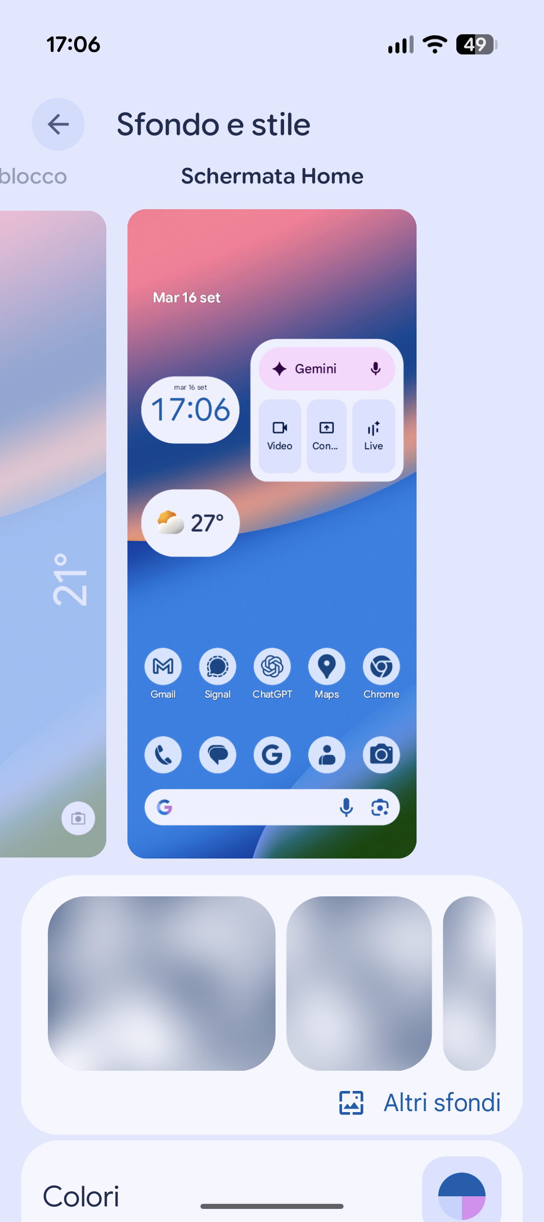 La personalizzazione non è estrema come sulle interfacce cinesi, ma con Material 3 c’è una buona flessibilità: puoi cambiare tema, palette dei colori estratta dallo sfondo, stile delle icone e persino la forma dei widget. È una personalizzazione più sobria, pensata per chi vuole uno smartphone ordinato ma comunque adattabile al proprio gusto.
