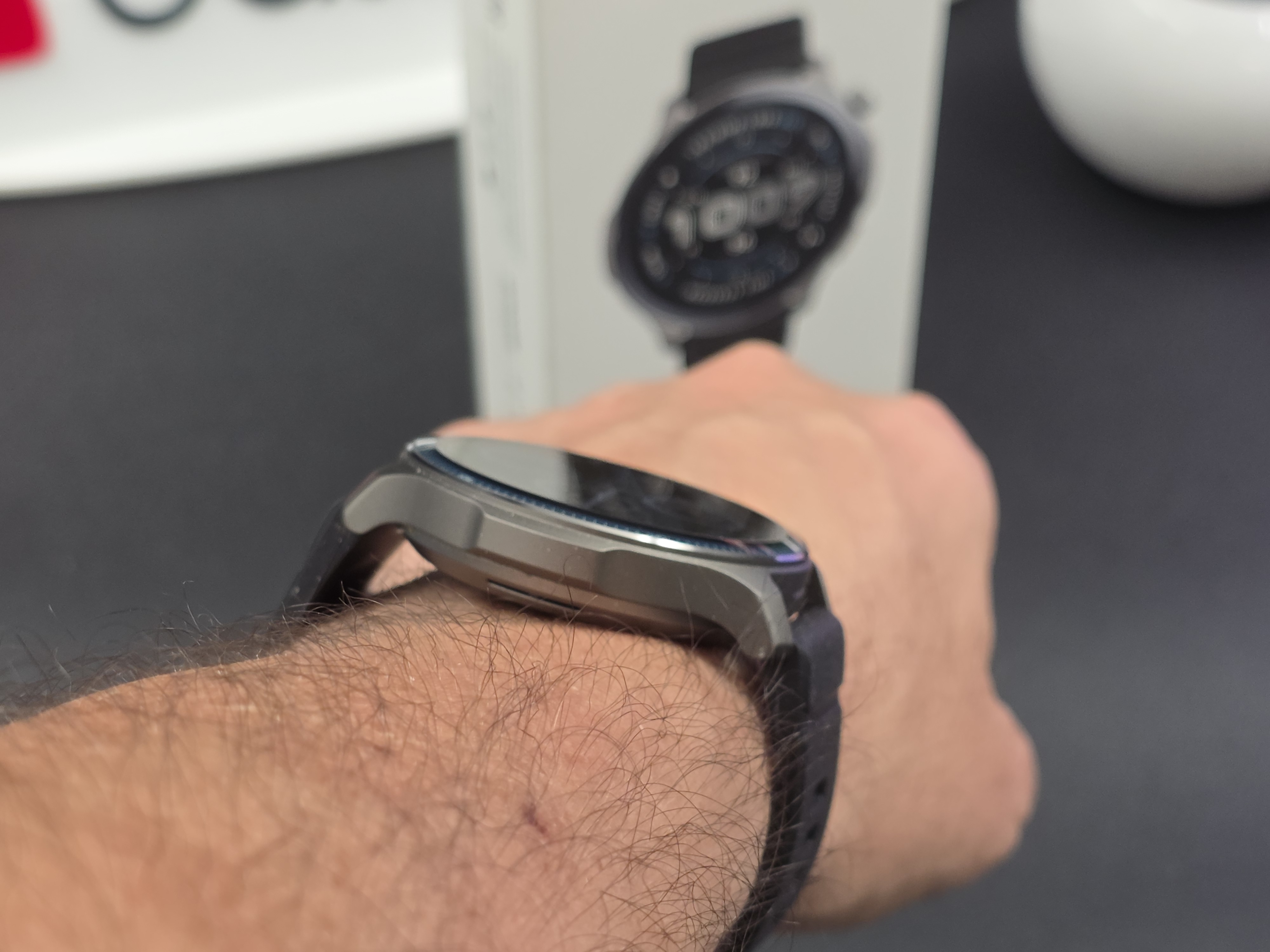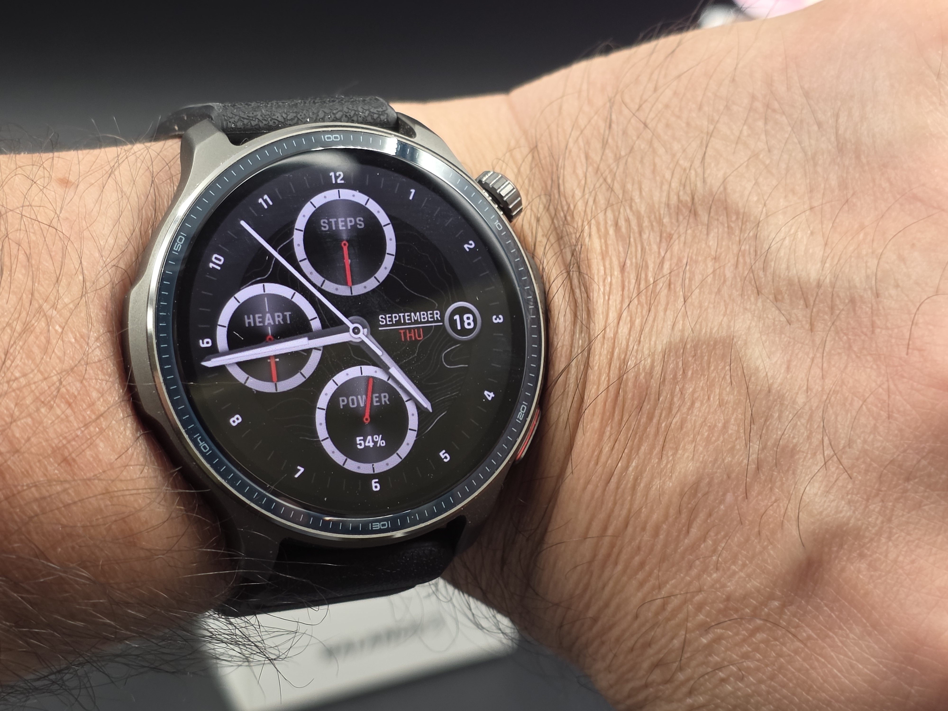 Le dimensioni sono di 47,4mm di diametro per 12,3mm di spessore, con un peso di soli 43 grammi (senza cinturino) che lo rende confortevole da indossare tutto il giorno.