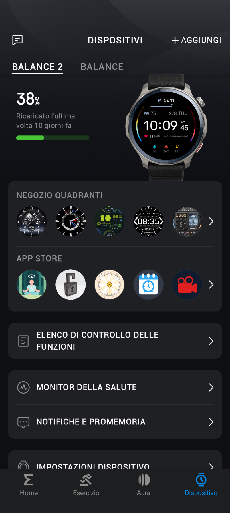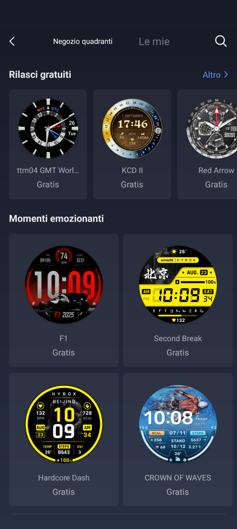 Lo smartwatch ha già una serie di watchface preinstallate, ma dall’app Zepp possiamo sceglierne di nuove ogni volta, variando in base all’umore o alla stagione e scegliendo fra le centinaia di versioni disponibili, sia gratuite che a pagamento.
