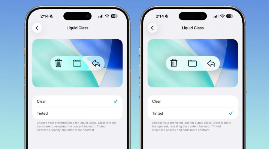 - Clear (predefinita): mantiene il look originale della Liquid Glass, con superfici trasparenti e riflessi morbidi.