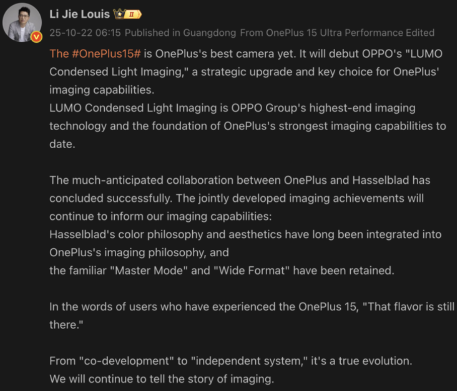 La scomparsa del logo Hasselblad segna la fine di un’epoca, ma anche l’inizio di una nuova identità tecnologica. Con la fotocamera LUMO Condensed Light Imaging, OnePlus vuole dimostrare di poter competere ad armi pari con colossi come Samsung, Google e vivo, puntando su innovazione interna e su un’esperienza fotografica più coerente.