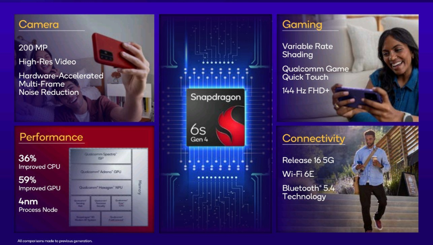 Il nuovo Snapdragon 6s Gen 4 segna un importante passo avanti rispetto ai predecessori basati su processo a 6nm.