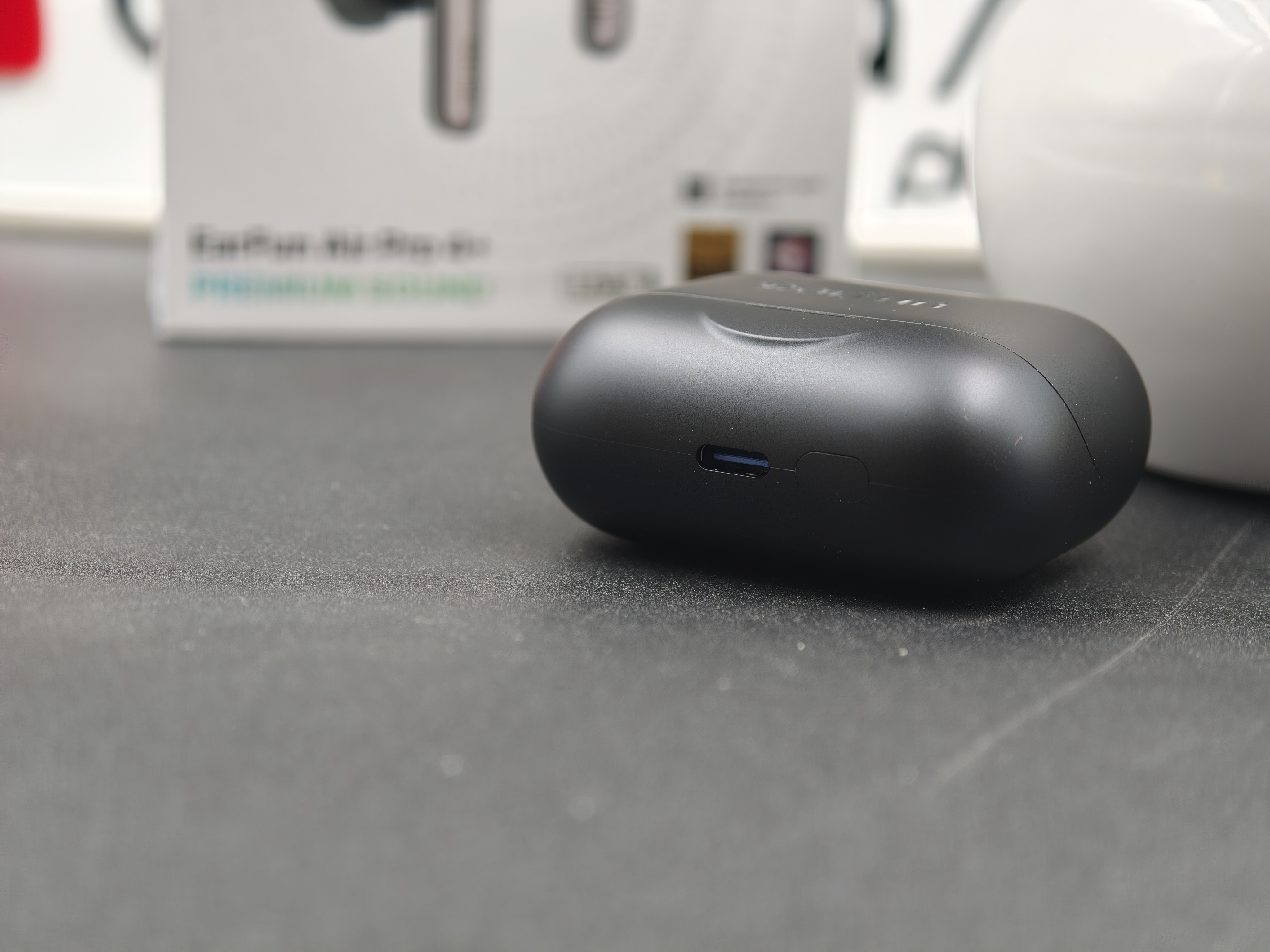 Gli EarFun Air Pro 4+ trasmettono fin dal primo contatto la sensazione di un prodotto ben costruito. La custodia di ricarica, realizzata in plastica opaca di ottima qualità, misura 60,3 × 50 × 27,9 mm e pesa circa 43 grammi. È compatta, leggera e si infila facilmente in tasca o nello zaino. La base piatta permette di appoggiarla in modo stabile, mentre la finitura satinata riduce efficacemente graffi e impronte.