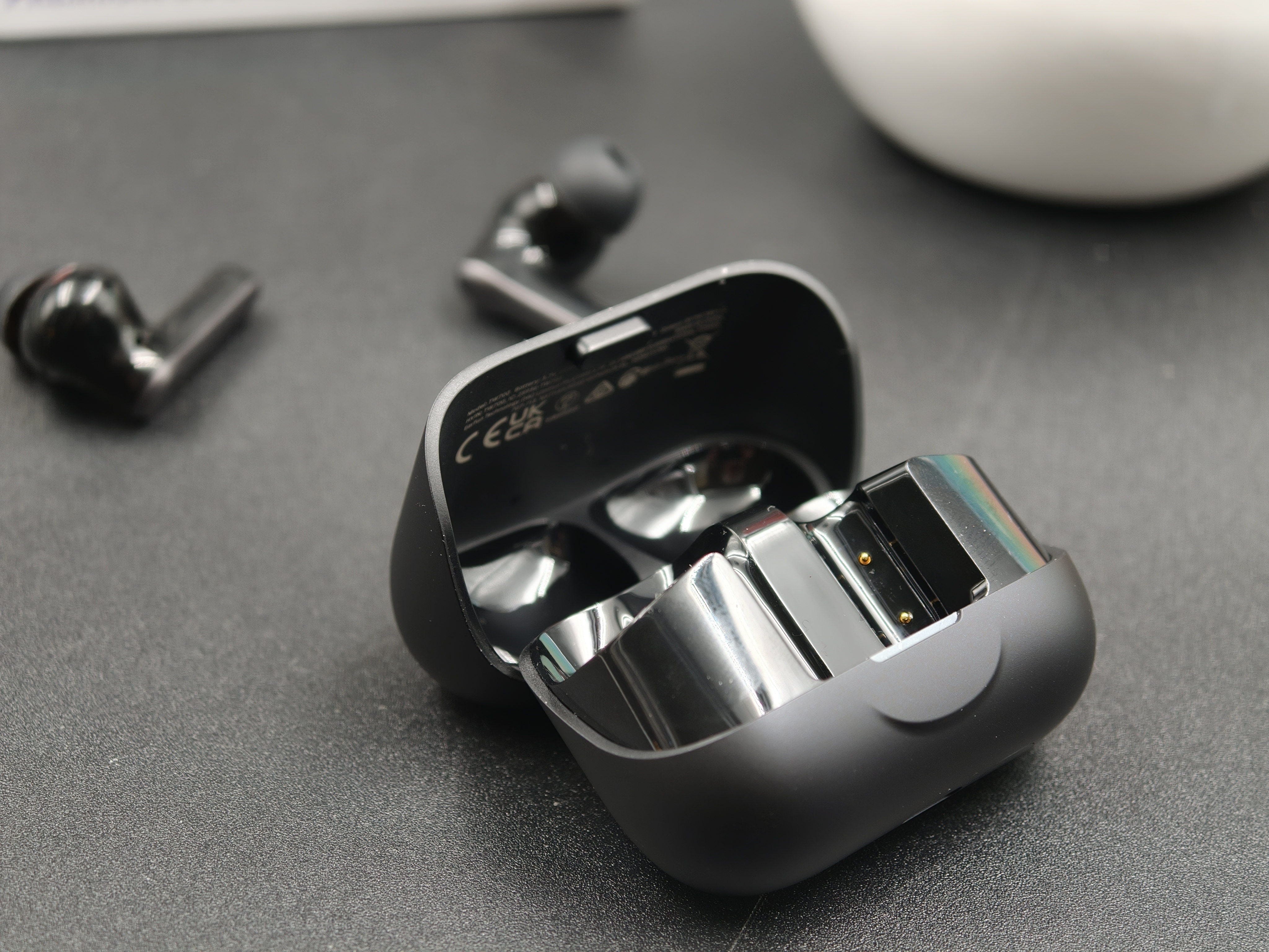 Il meccanismo di apertura è uno degli elementi meglio riusciti: la cerniera offre una resistenza precisa e lineare, con uno scatto deciso ma fluido che consente di aprire la custodia anche con una mano. Il coperchio resta ben saldo in posizione, senza giochi né scricchiolii, e la chiusura magnetica è calibrata in modo impeccabile. I due auricolari si ancorano ai contatti di ricarica con magneti forti ma non eccessivi, risultando comodi da estrarre e reinserire.