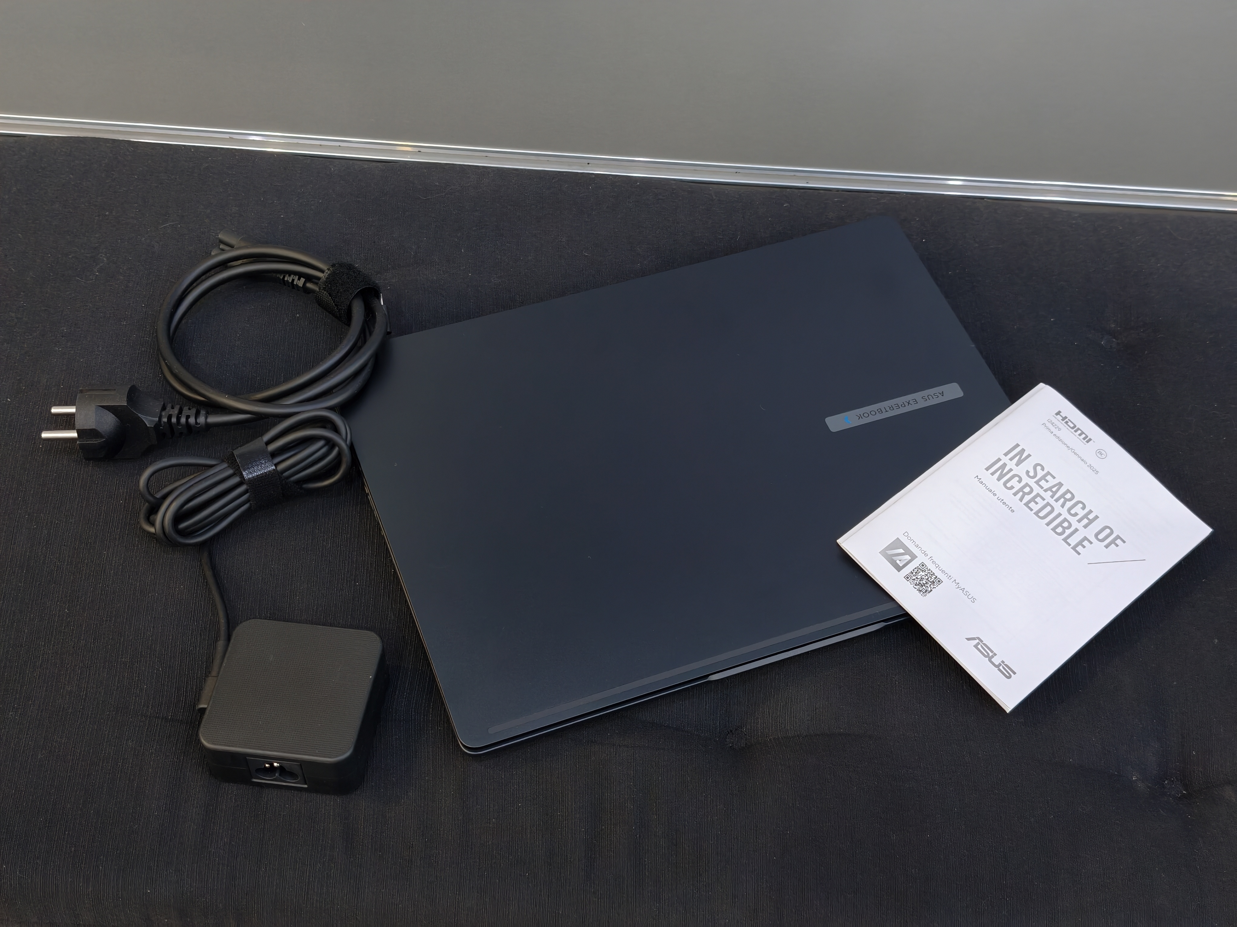 La scatola dell’ASUS ExpertBook B3 è esattamente quello che ti aspetti da un portatile business: sobria, compatta e senza fronzoli. Dentro trovi: