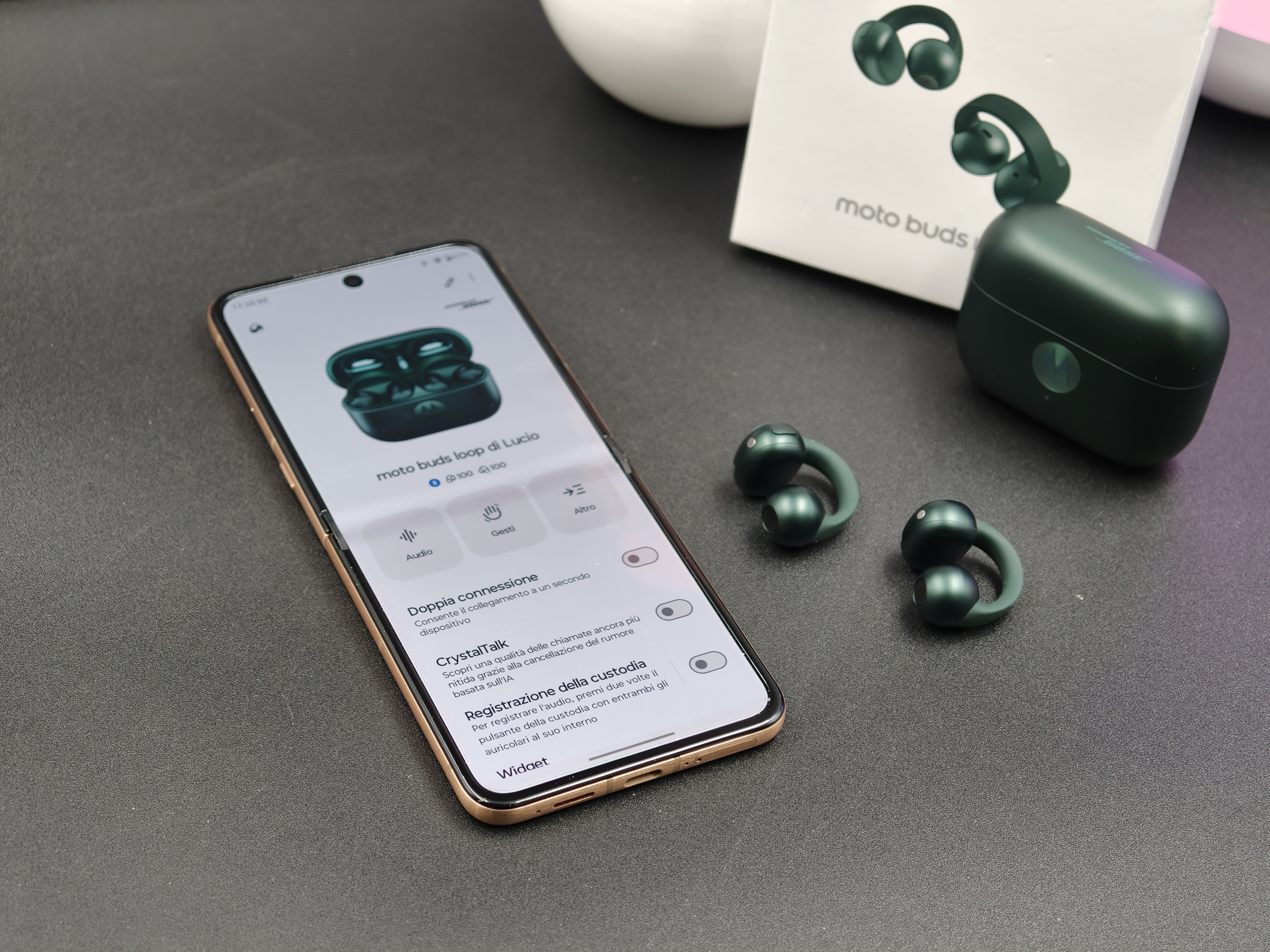 C’è poi il lato immagine, che qui non è affatto secondario. La collaborazione con Bose dimostra che Motorola non ha trattato l’audio come un semplice accessorio, mentre il lavoro con Pantone e la versione French Oak con crystals by Swarovski® raccontano chiaramente quanto il brand stia spingendo sul legame tra tecnologia e fashion. Le Loop non sono solo “cuffiette verdi” o color champagne: sono pensate proprio per essere viste, sfoggiate, portate come un ear cuff moderno.