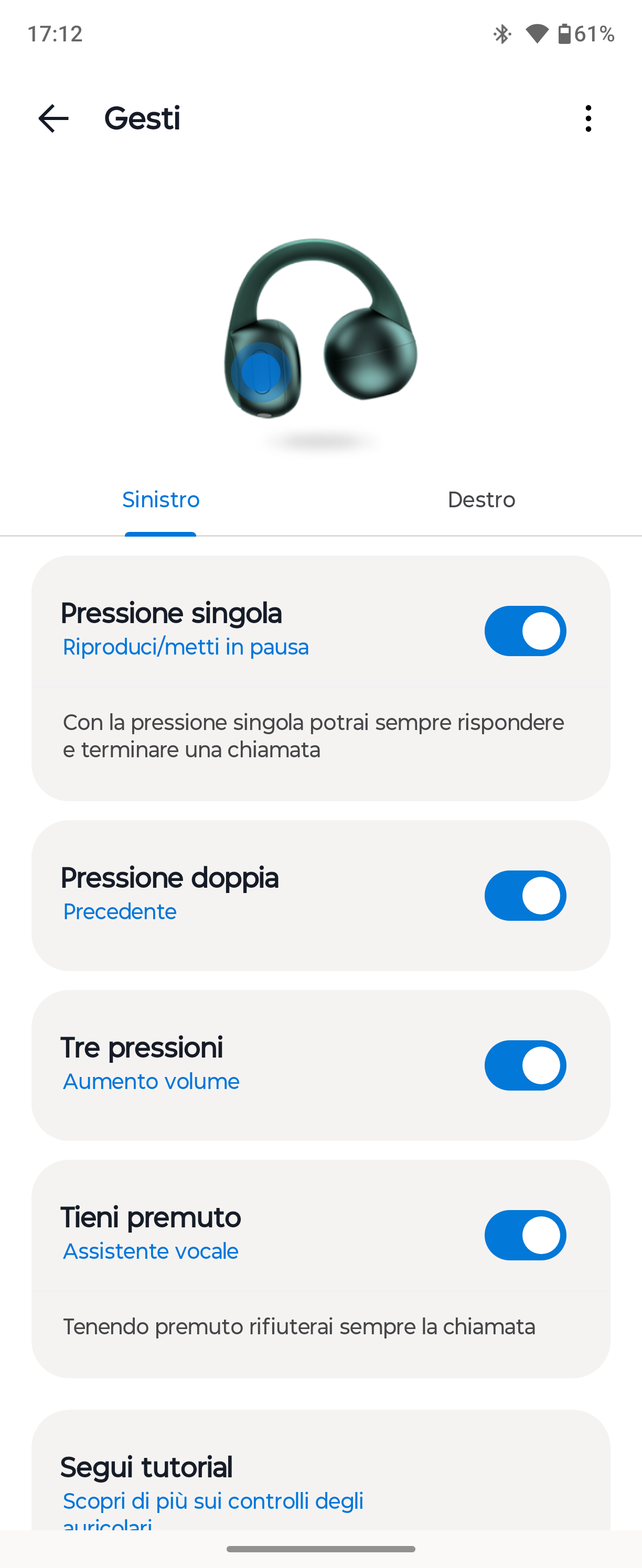 La gestione passa dall’app Moto Buds, che è un po’ il centro di controllo di tutta la gamma di auricolari Motorola. Da lì puoi: