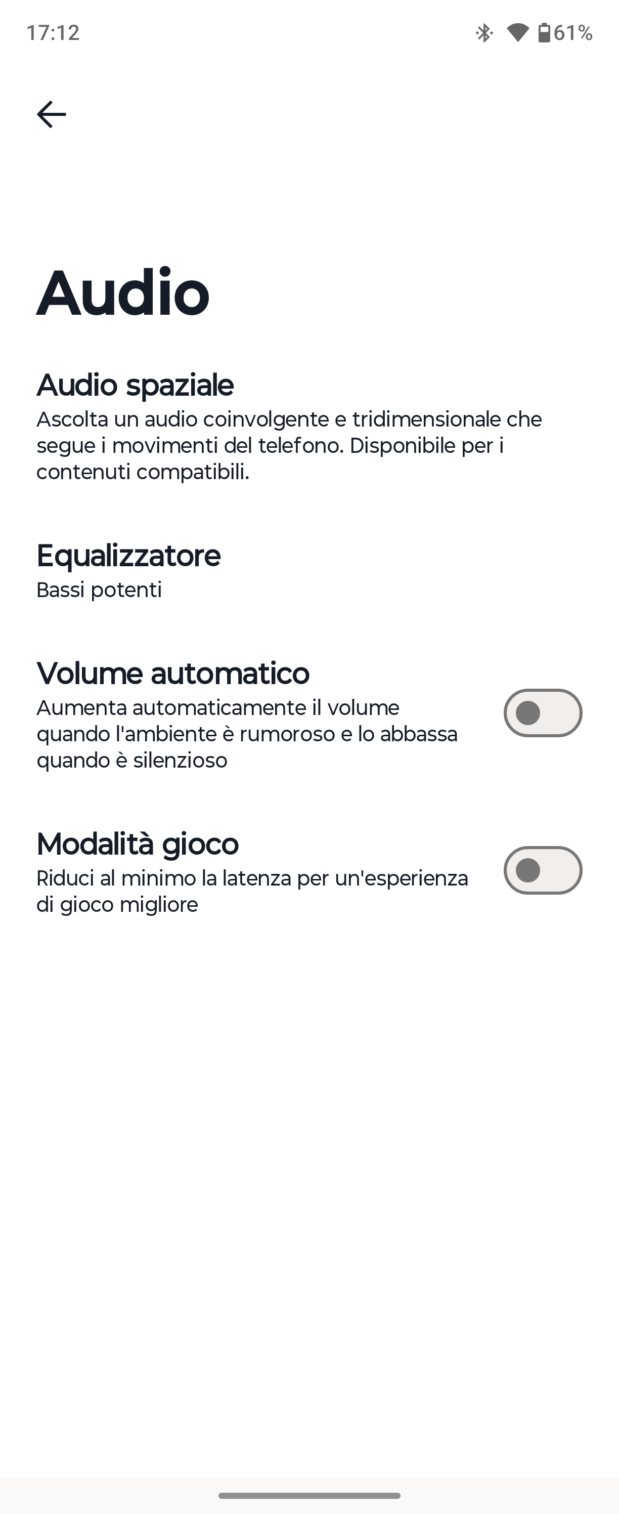 Dal lato software, l’app Moto Buds offre quattro preset (alti brillanti, bassi potenti, dialoghi chiari e neutrale) più un equalizzatore a 10 bande per chi vuole mettere mano al dettaglio. Ha senso tenere attivo il profilo con bassi potenziati, che infatti è quello predefinito: le basse frequenze sono le prime a soffrire in un design open-ear e qui puoi permetterti di spingerle un po’ senza trasformare il suono in una marmellata indistinta.