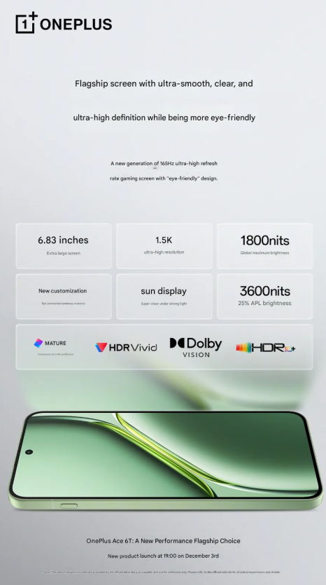 Un altro elemento chiave del OnePlus 15R è il display. Il marchio ha confermato l’uso di un pannello da 6,83 pollici con refresh a 165 Hz, pensato chiaramente per il gaming e per un’interfaccia super fluida.