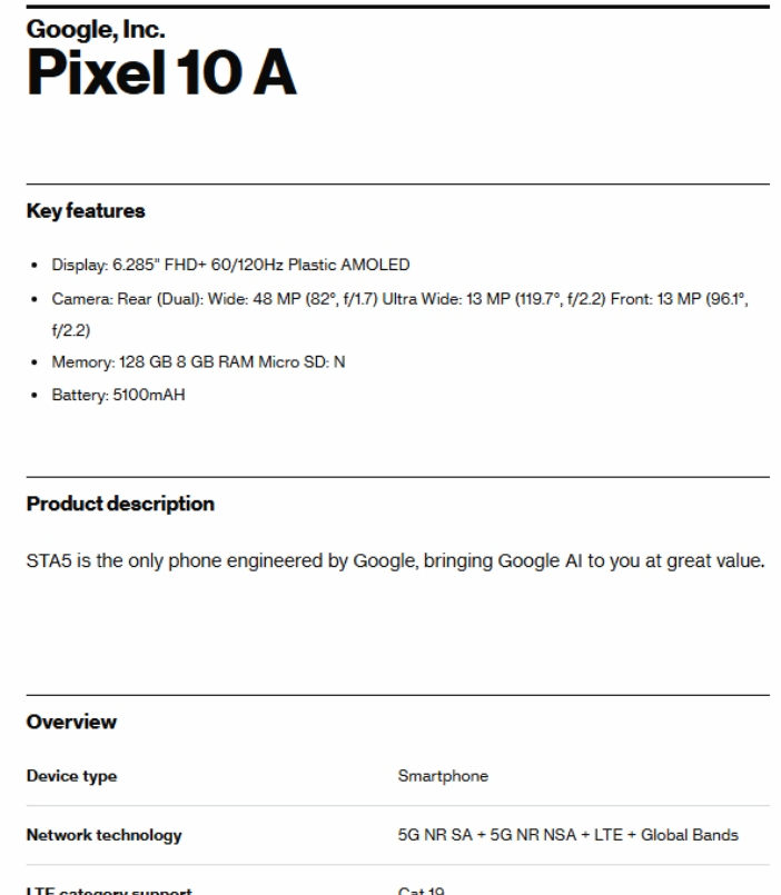 Pixel 10a certificazione Verizon: primi dettagli sul nuovo modello economico di Google