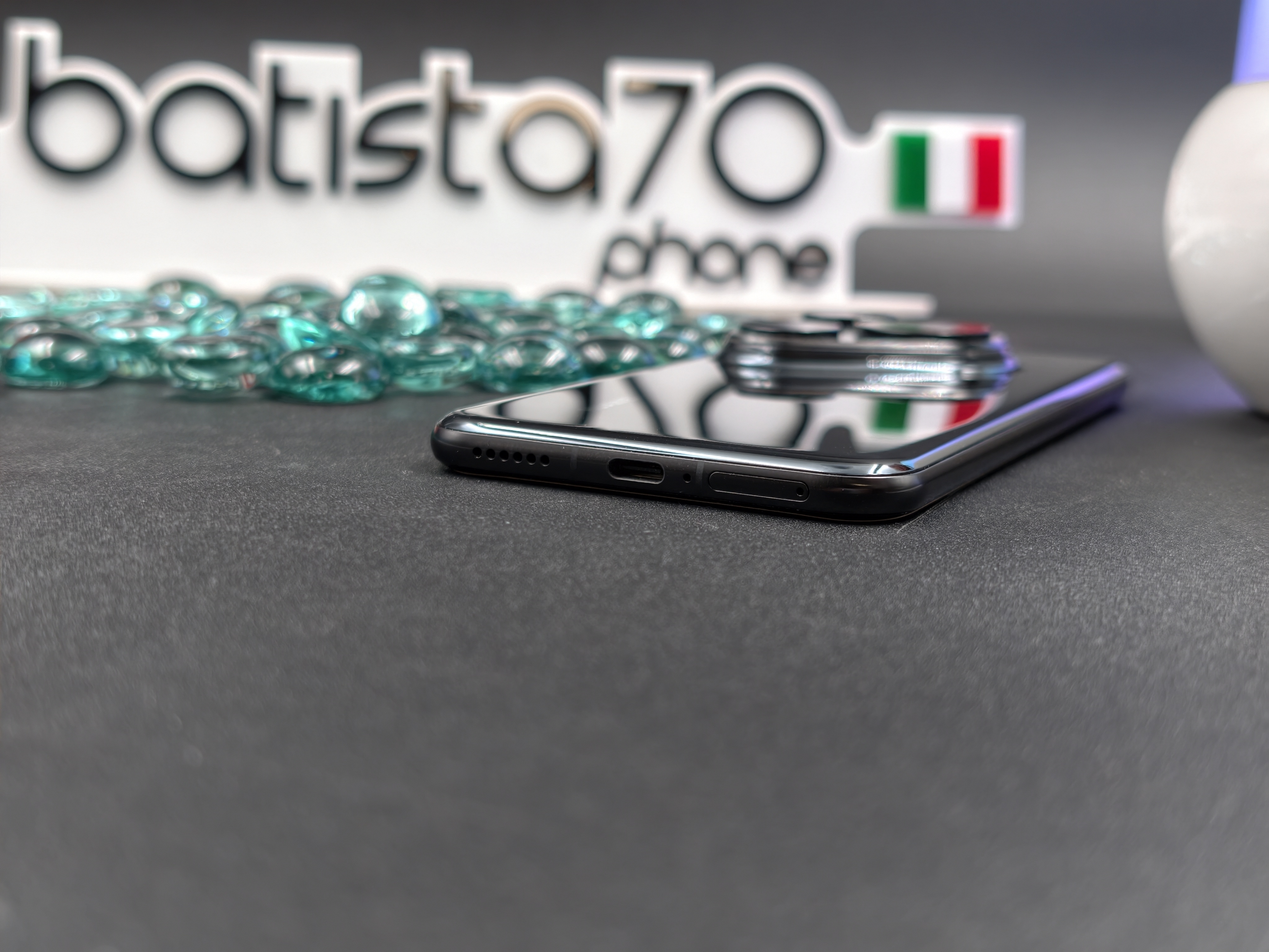 Porte e interfacce sono organizzate in modo classico: in basso troviamo la porta USB-C, il microfono principale, lo speaker e il carrellino SIM (solo nano SIM, niente microSD). In alto ci sono il secondo microfono e l’apertura per lo speaker superiore, che lavora in stereo con quello inferiore. Sul lato destro ci sono i tasti del volume e il tasto di accensione che integra il lettore d’impronte laterale e le funzioni Smart Controls, con tocchi personalizzabili per richiamare scorciatoie e azioni rapide.