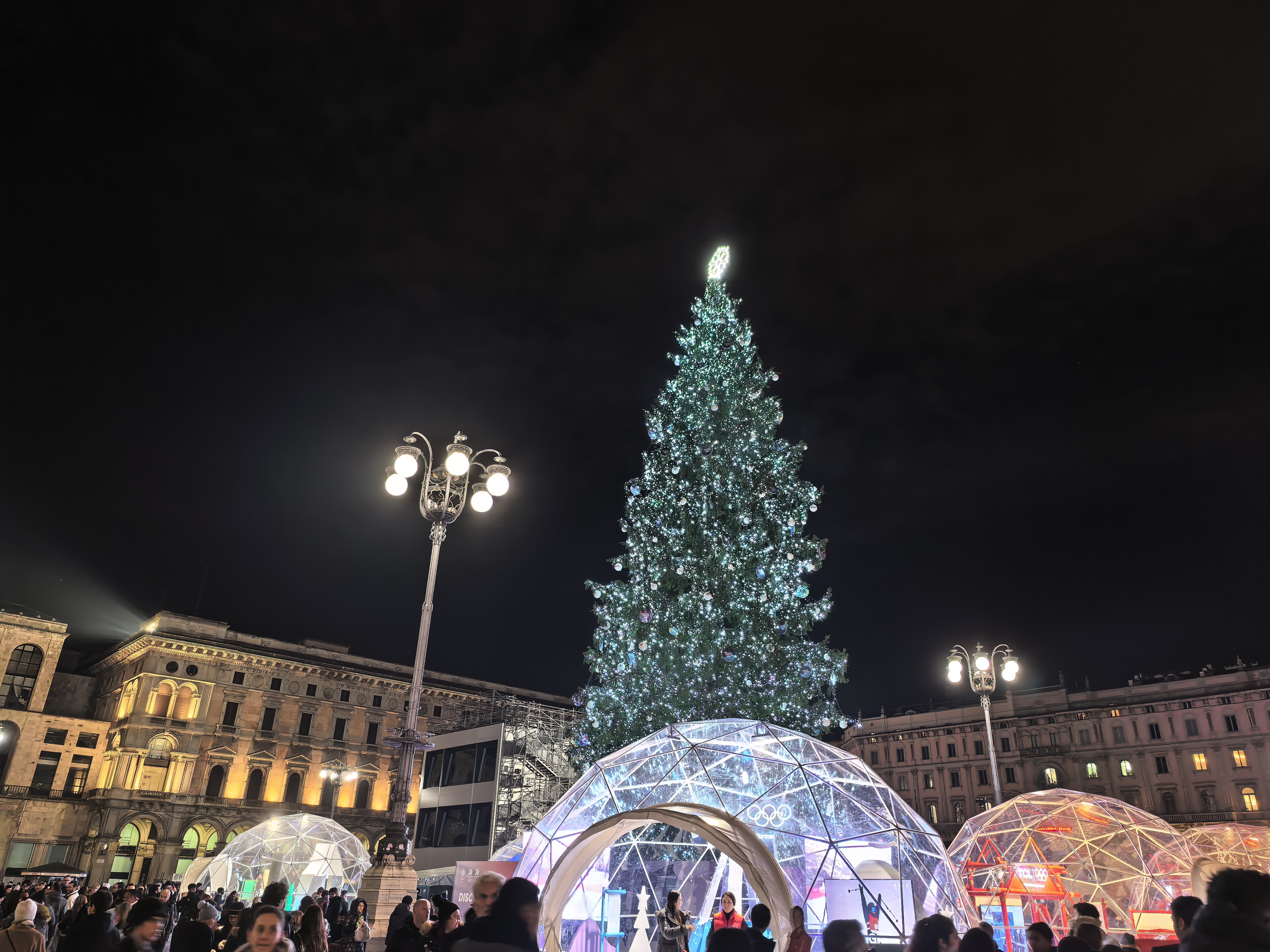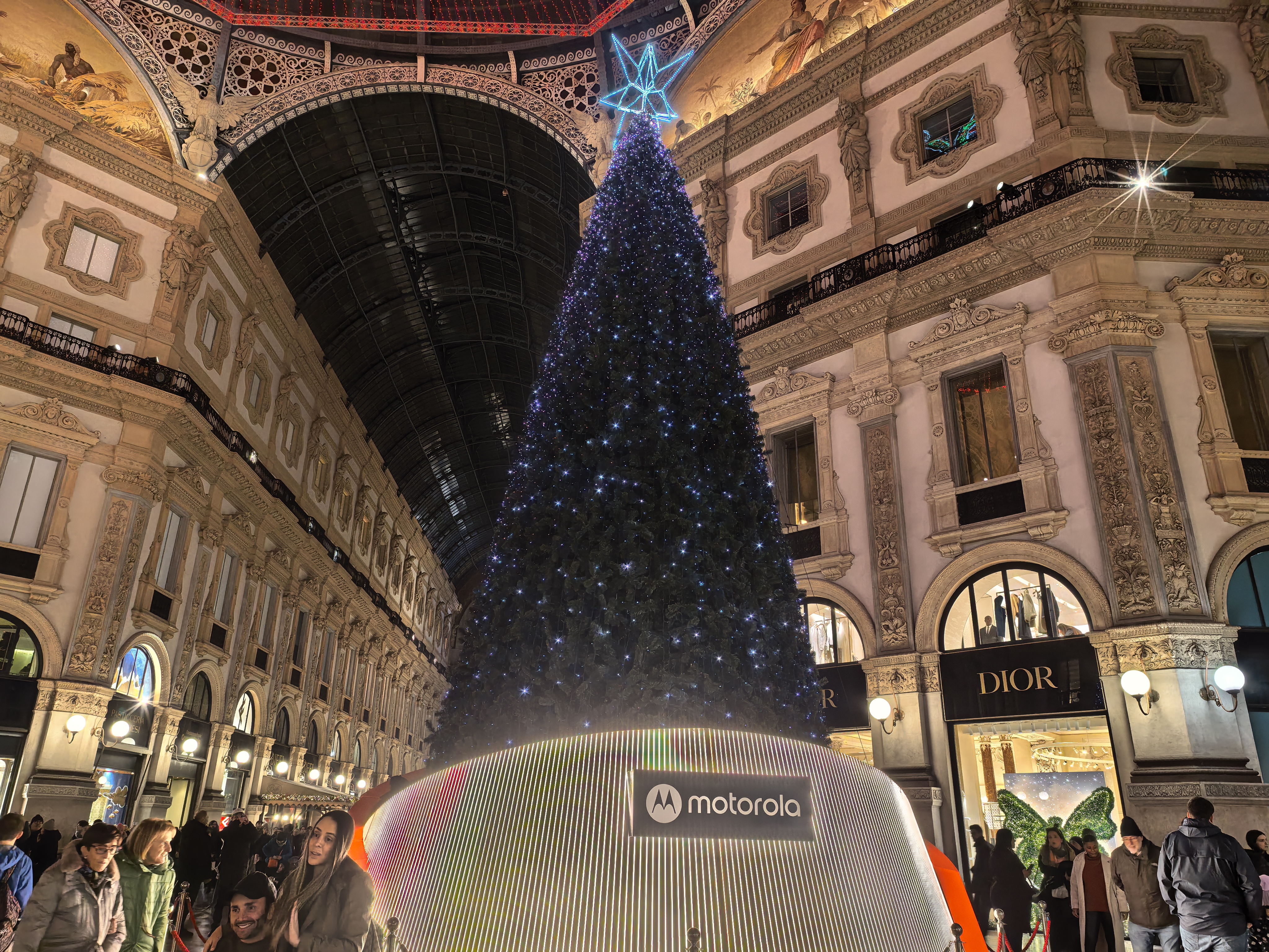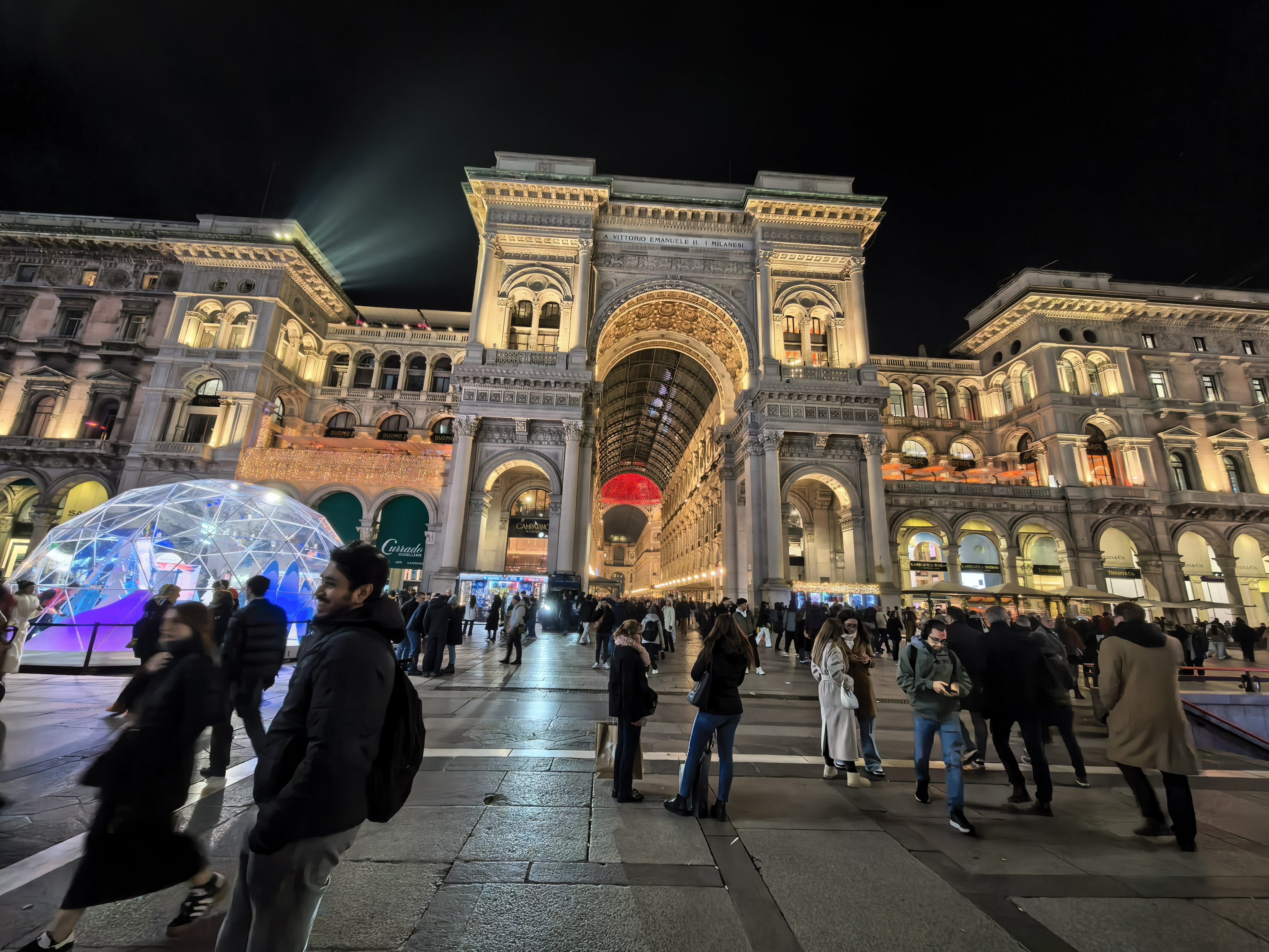 La ultra-grandangolare da 40 MP f/2.2 entra in gioco quando servono paesaggi, architetture o grandi spazi. In centro a Milano, per esempio, è perfetta per mettere dentro tutto: palazzi, luminarie sospese e flusso di persone. L’angolo è ampio, le distorsioni sono ben controllate e il livello di dettaglio resta alto anche ai bordi. Importante: il colore resta coerente con la principale, così passando da una lente all’altra non sembra di cambiare telefono.