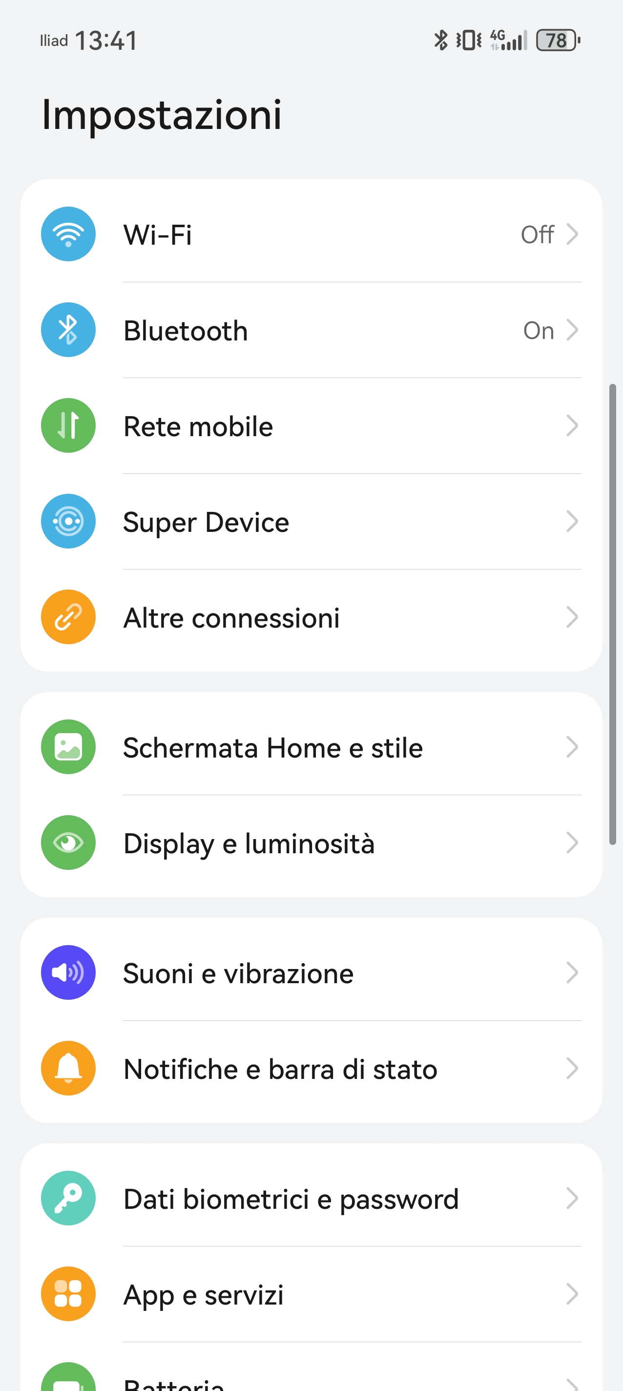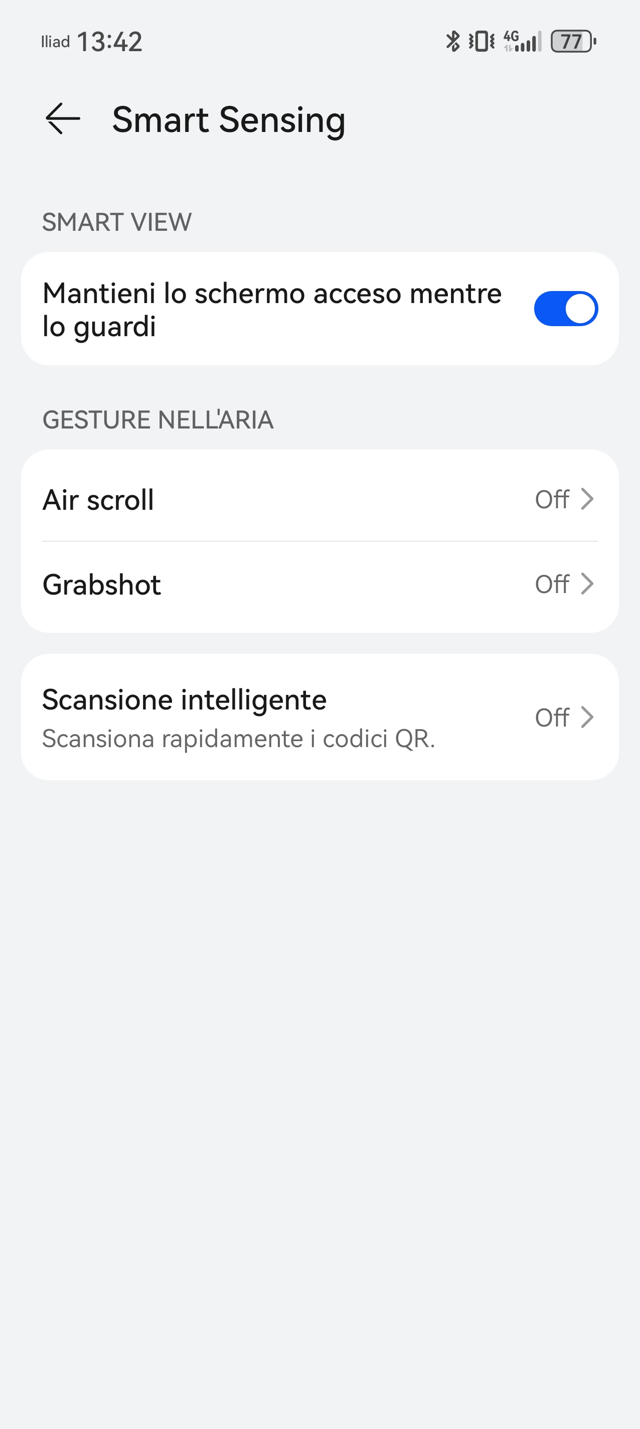 Per il comfort visivo Huawei usa un PWM dimming a 1440 Hz, pensato per ridurre lo sfarfallio alle basse luminosità. È una di quelle cose che non vedi a occhio nudo, ma che apprezzi se usi spesso il telefono al buio per leggere o scrollare social la sera. Dalle impostazioni puoi regolare temperatura colore, passare alla modalità più naturale o più “intensa” e attivare la classica protezione occhi, oltre alla modalità scura a livello di sistema.