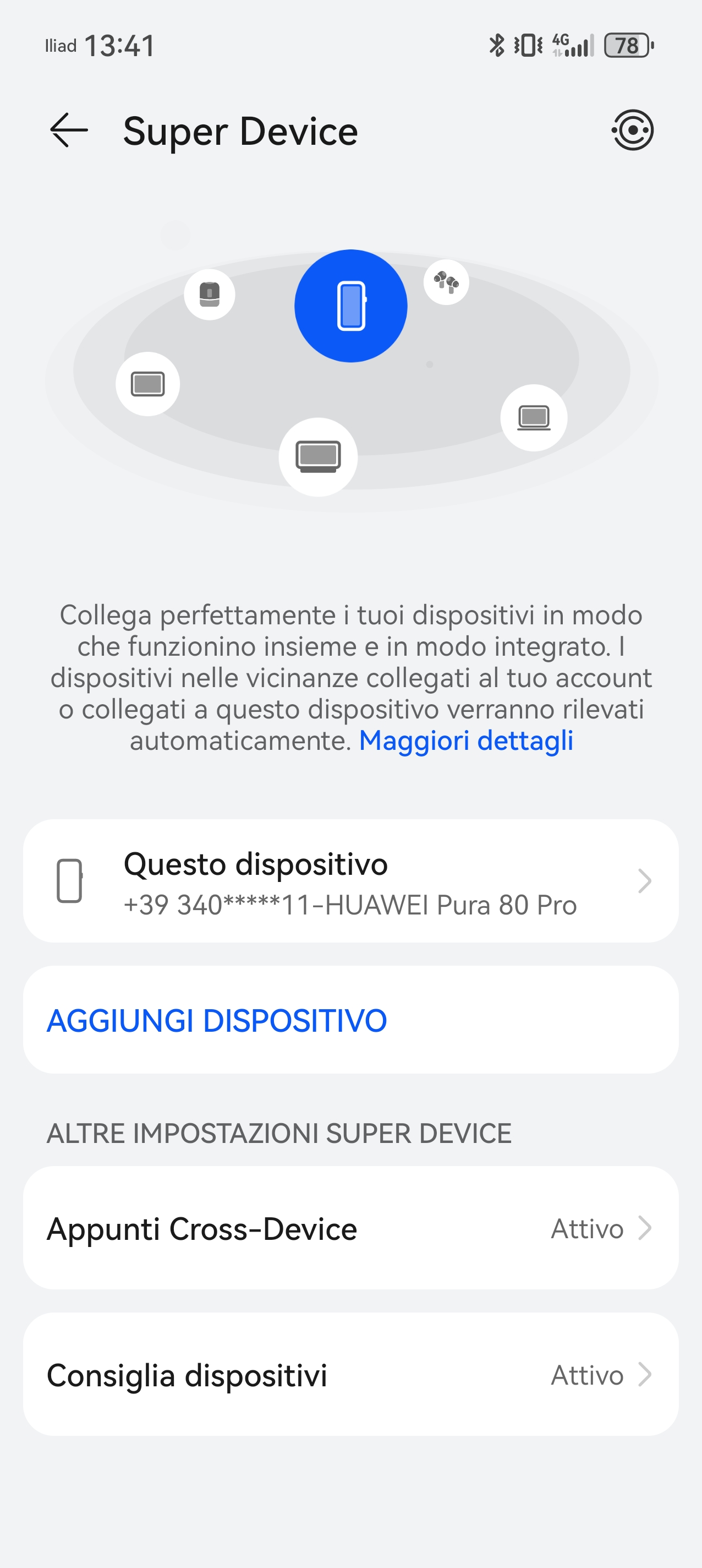 Su HUAWEI Pura 80 Pro gira EMUI 15, l’ultima evoluzione della piattaforma di Huawei. L’interfaccia resta quella che conosciamo: pulita, piena di opzioni, ma abbastanza ordinata da non spaventare chi vuole solo “accendere e usare”. Le animazioni sono fluide, le gesture di navigazione funzionano bene e la home si può impostare sia con drawer sia con tutte le app in prima pagina, in base alle abitudini.