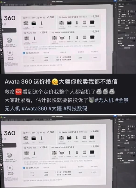 Secondo le immagini trapelate, DJI Avata 360 potrebbe partire da 2.988 yuan per il solo drone. La cifra viene indicata come equivalente a circa 426 dollari, quindi potenzialmente sotto la soglia psicologica dei 500. In euro, a spanne, potrebbe collocarsi intorno ai 400€, ma è una stima indicativa. Inoltre, tasse e import cambiano tutto.