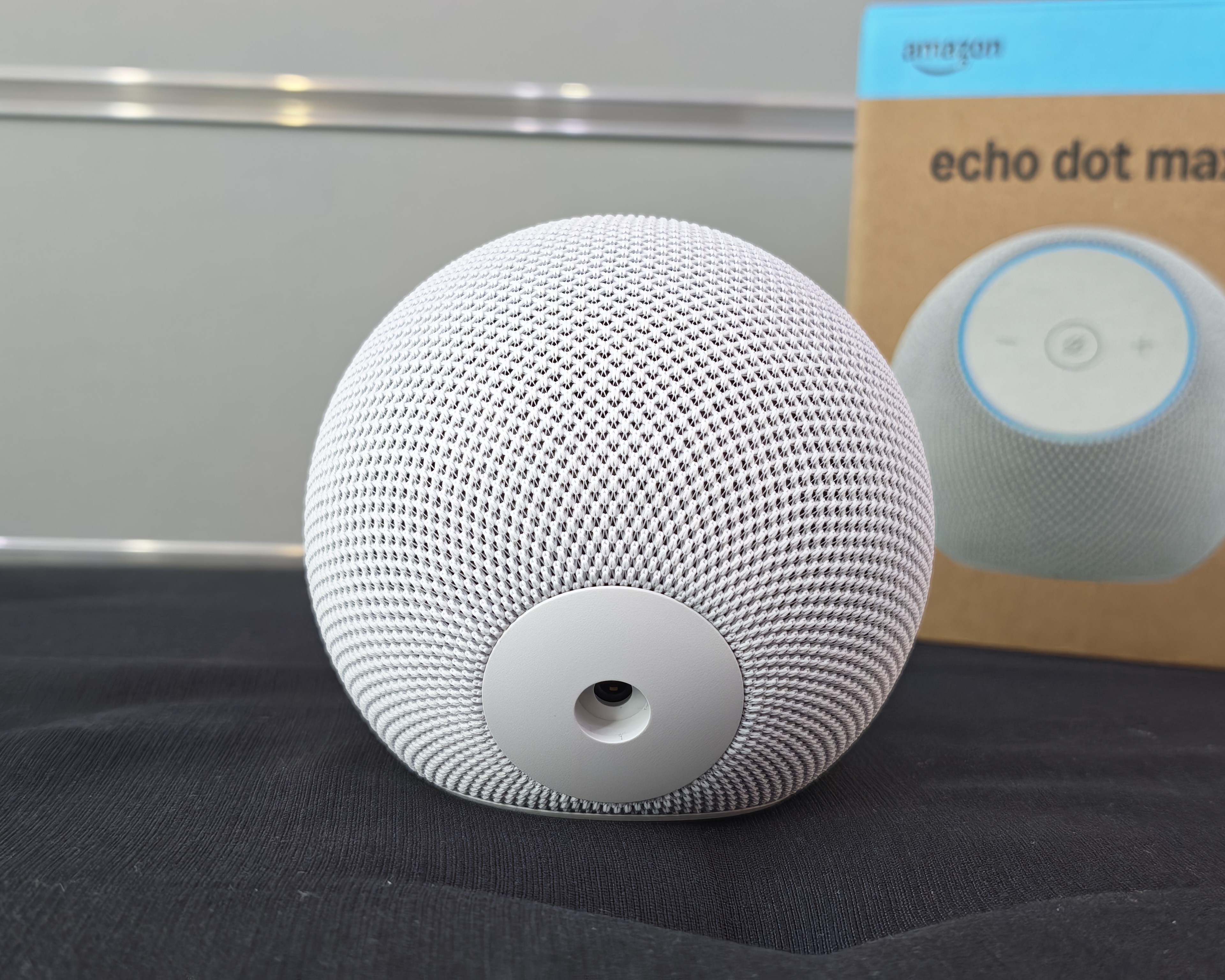 Echo Dot Max riprende l’estetica sferica tipica della famiglia Echo, ma introduce finiture e soluzioni più moderne. Il rivestimento in tessuto a trama 3D gli conferisce un aspetto più ricercato rispetto ai Dot tradizionali, rendendolo un oggetto che può stare tranquillamente in vista senza sembrare un “gadget”. È compatto, ben bilanciato e facile da posizionare su qualsiasi superficie.