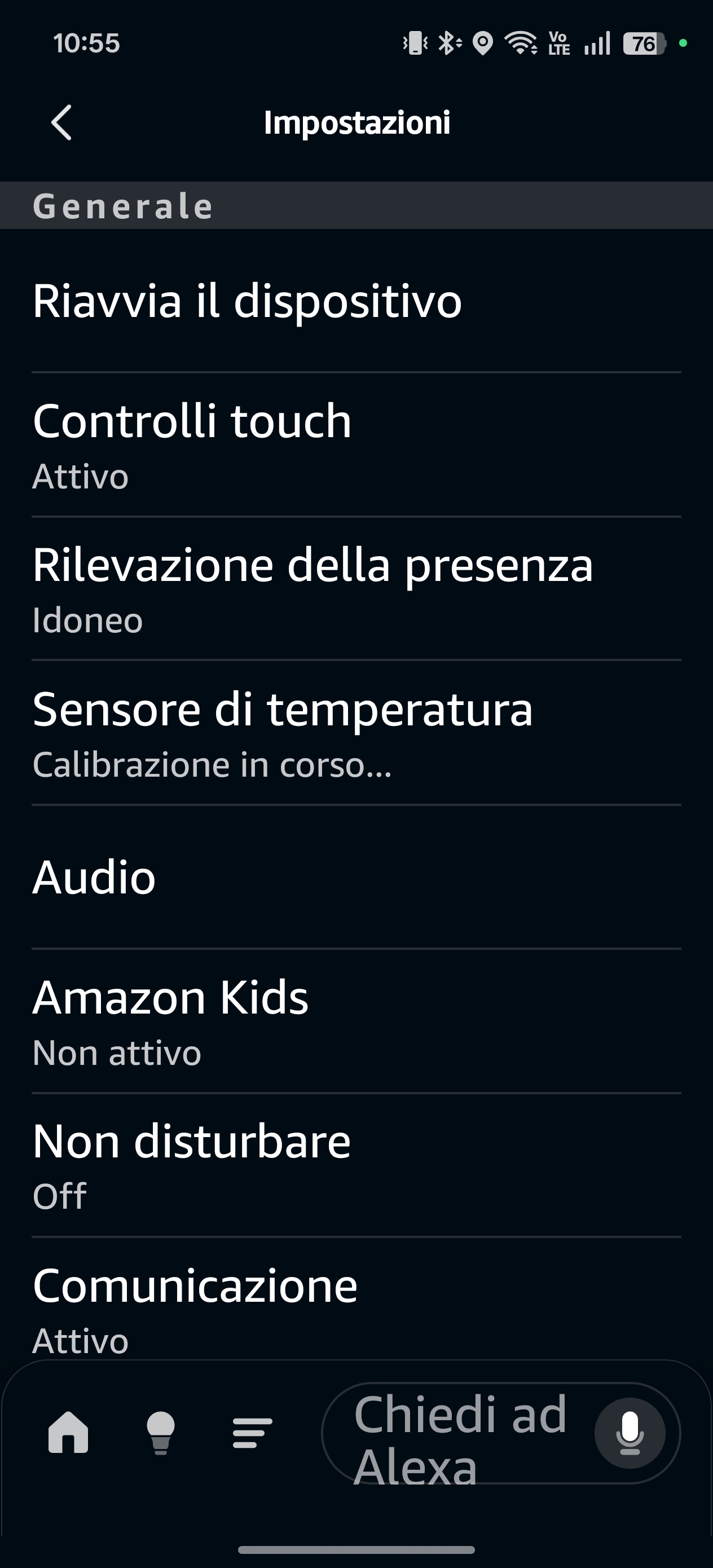 La configurazione iniziale tramite l’app Alexa è immediata: il dispositivo viene riconosciuto in pochi secondi, la connessione alla rete Wi-Fi avviene senza difficoltà e il sistema individua automaticamente gli accessori compatibili presenti in casa. L’app permette di organizzare stanze, scenari e routine con grande facilità, anche per chi non è pratico di domotica.