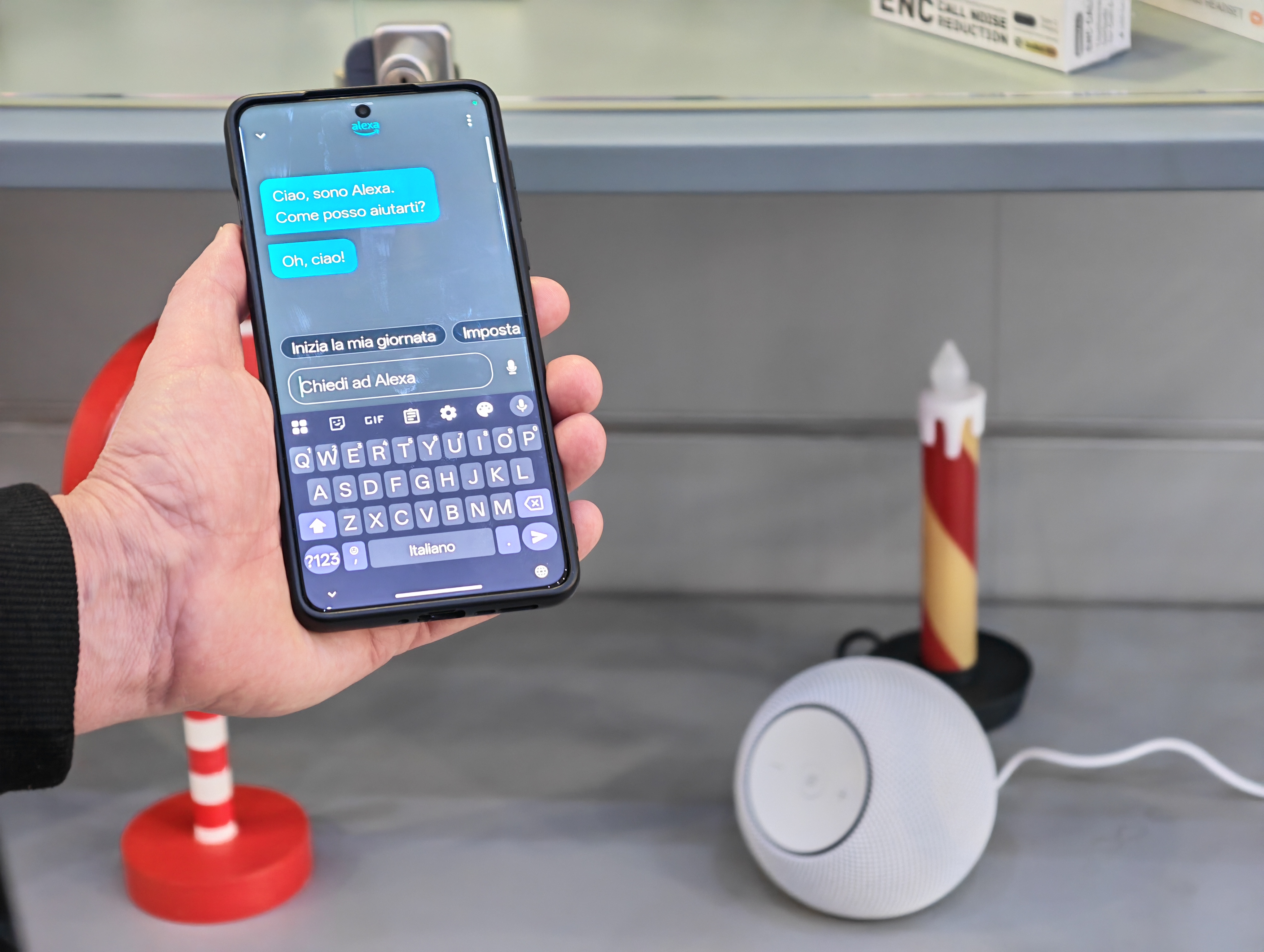 Abbiamo installato Echo Dot Max nel negozio disposto su un solo piano. È l’ambiente dove passiamo più tempo, dove lavoriamo e gestiamo la maggior parte dei dispositivi smart. Questo ci ha permesso di capire rapidamente quali siano i suoi punti di forza nella vita reale.