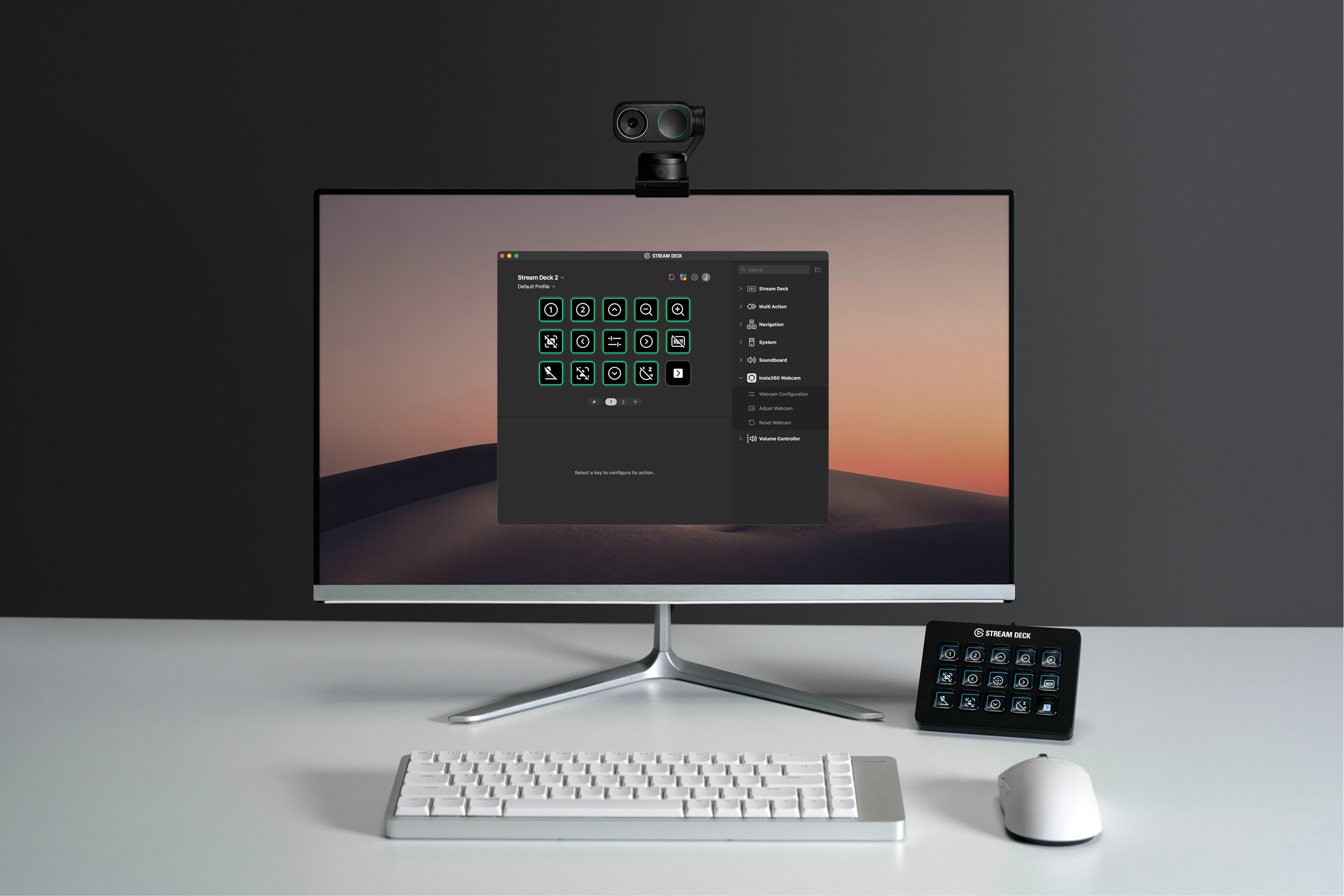 Una novità significativa è l’integrazione nativa con Elgato Stream Deck, che consente ai creator di controllare la webcam in modo tattile e immediato. Con un singolo tocco è possibile regolare esposizione, bilanciamento del bianco e luminosità, attivare modalità AI, passare tra preset salvati o gestire più fotocamere simultaneamente.
