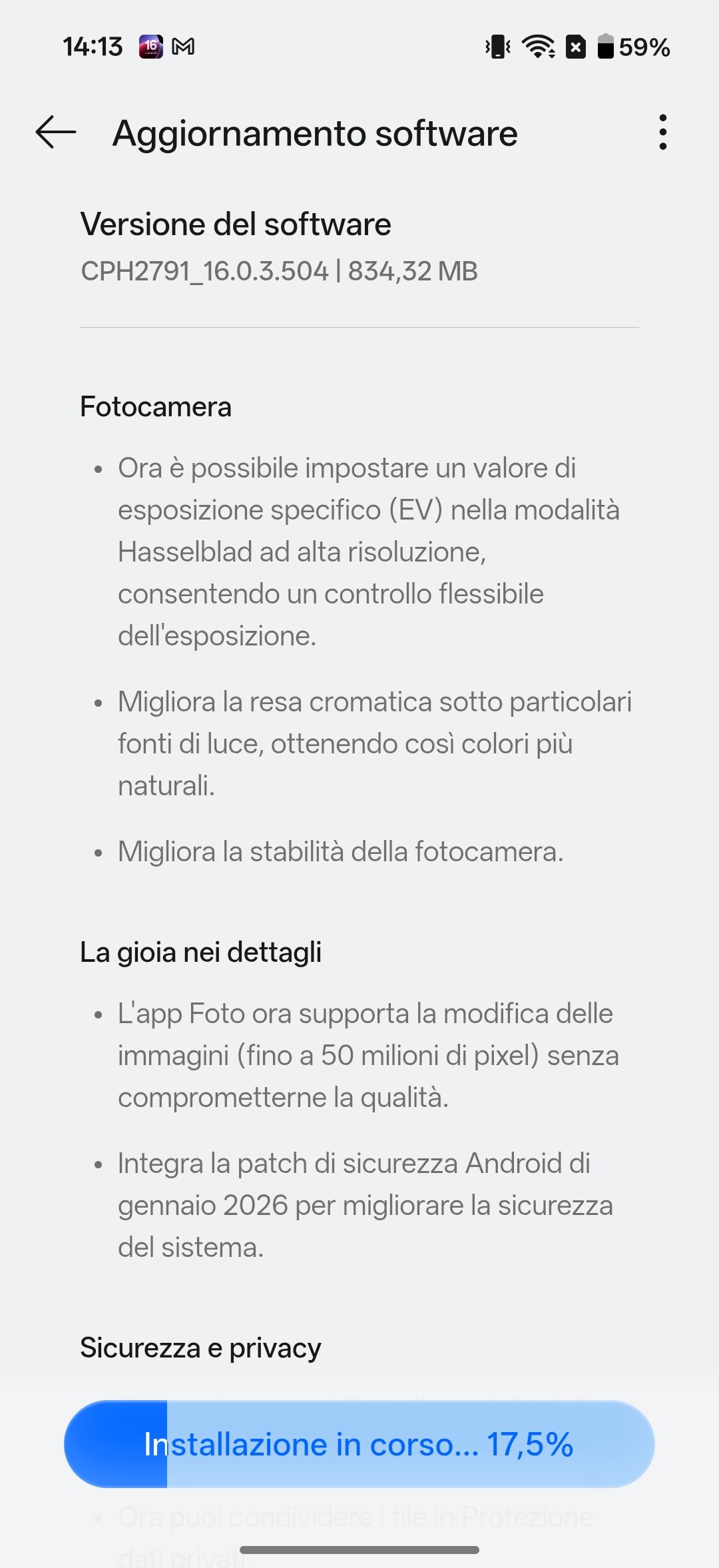 Non è un update minuscolo. Parliamo di poco più di 830 MB su Find X9 Pro. Quindi sì, meglio il Wi-Fi. Inoltre, il rollout resta graduale, perciò potresti non vederlo subito.