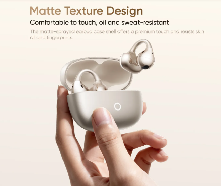 Il punto di forza dei realme Buds Clip è il design a clip aperto. A differenza dei classici in-ear, questi auricolari non chiudono il condotto. Quindi l’orecchio “respira” di più. Inoltre, la vestibilità risulta meno invasiva durante l’ascolto prolungato.