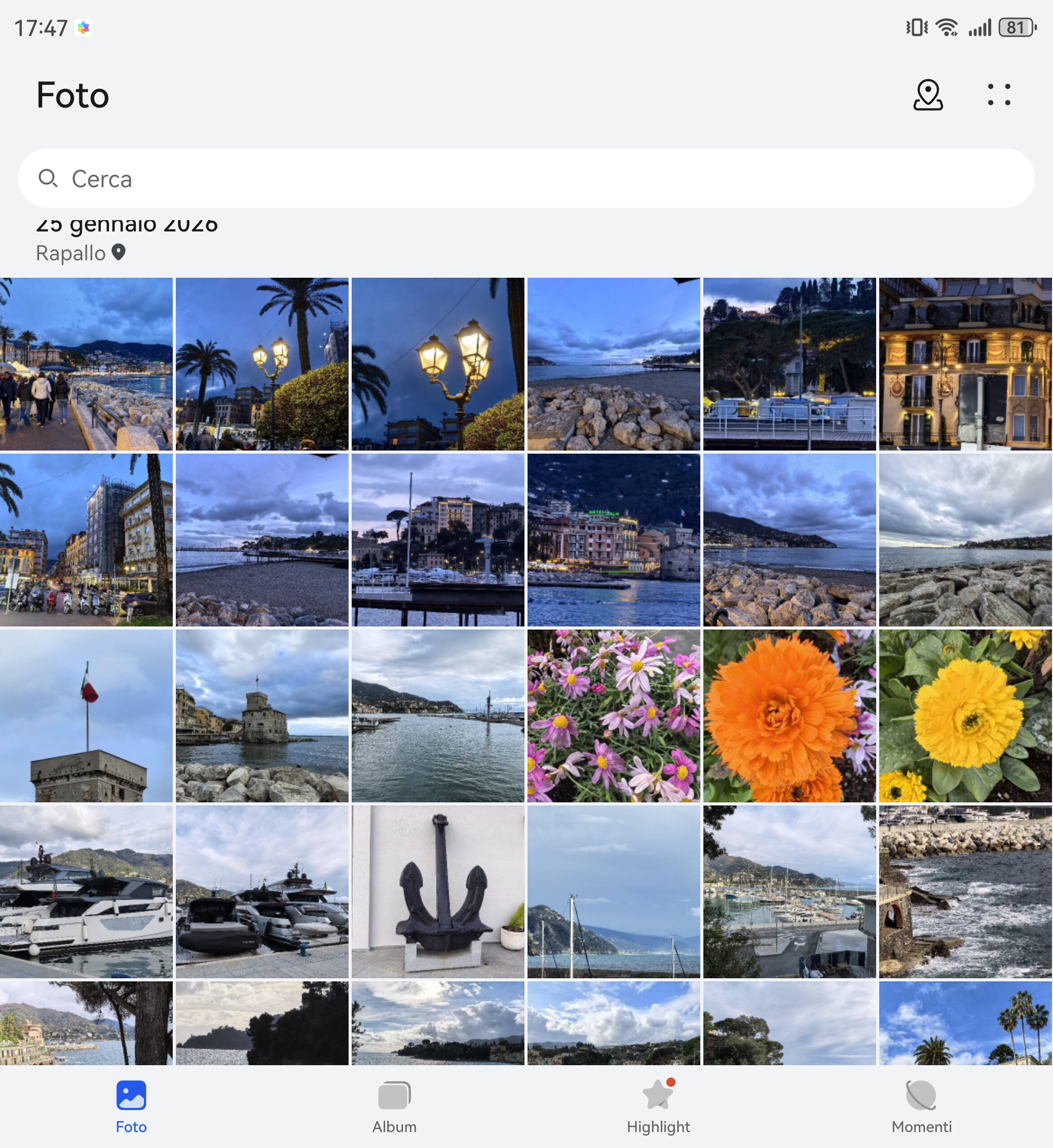 La base è seria. La principale è una 50 MP con OIS e soprattutto apertura variabile f/1.4–f/4.0; parliamo di un sensore “importante” per un fold, e lo si vede già nella gestione della luce. Poi c’è una ultra-grandangolare da 12 MP con autofocus, e un tele periscopico 12 MP con zoom dichiarato 5,5x; in pratica siamo in zona 125/130 mm equivalenti, quindi una focale perfetta per dettagli e ritratti più “stretti”. A completare il pacchetto ci sono i classici extra Huawei: Laser AF e sensore per la lettura più fine dei colori.