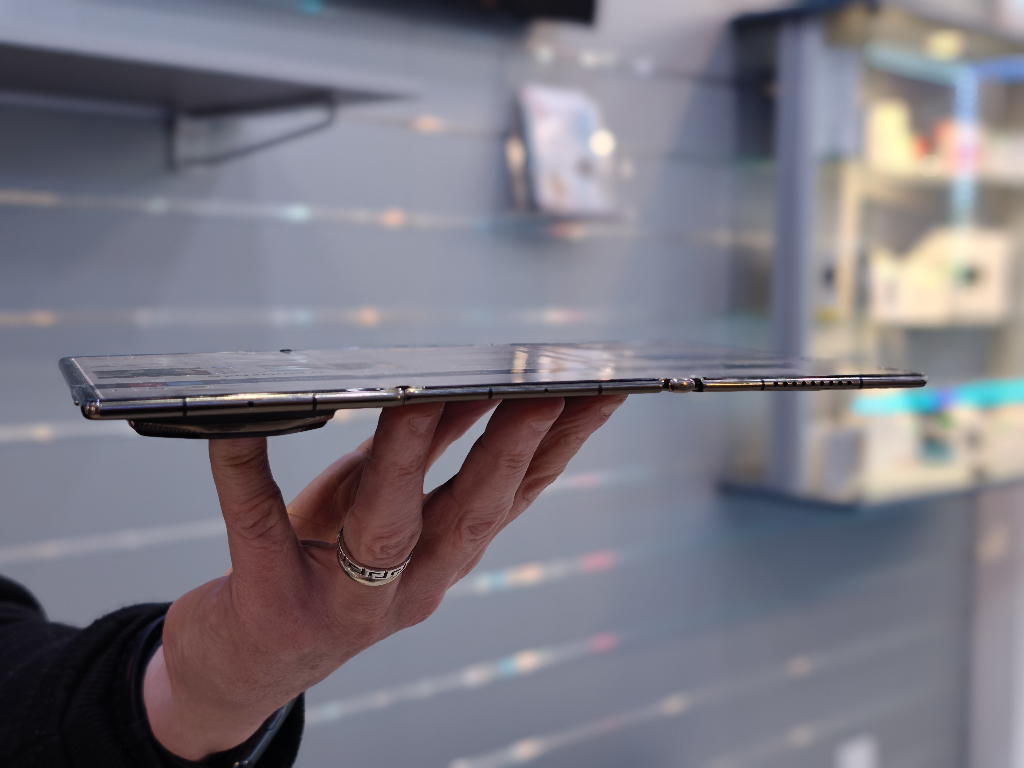 Il punto che colpisce davvero è lo spessore. Da chiuso siamo attorno ai 12,8 mm, quindi su valori molto vicini a quelli di un fold tradizionale. Da aperto, invece, è incredibilmente sottile: circa 3,6 mm. Dal vivo fa quasi effetto, perché sembra di avere in mano un pannello più che un dispositivo completo; e questo è uno dei motivi per cui il posizionamento ultra premium si percepisce subito.