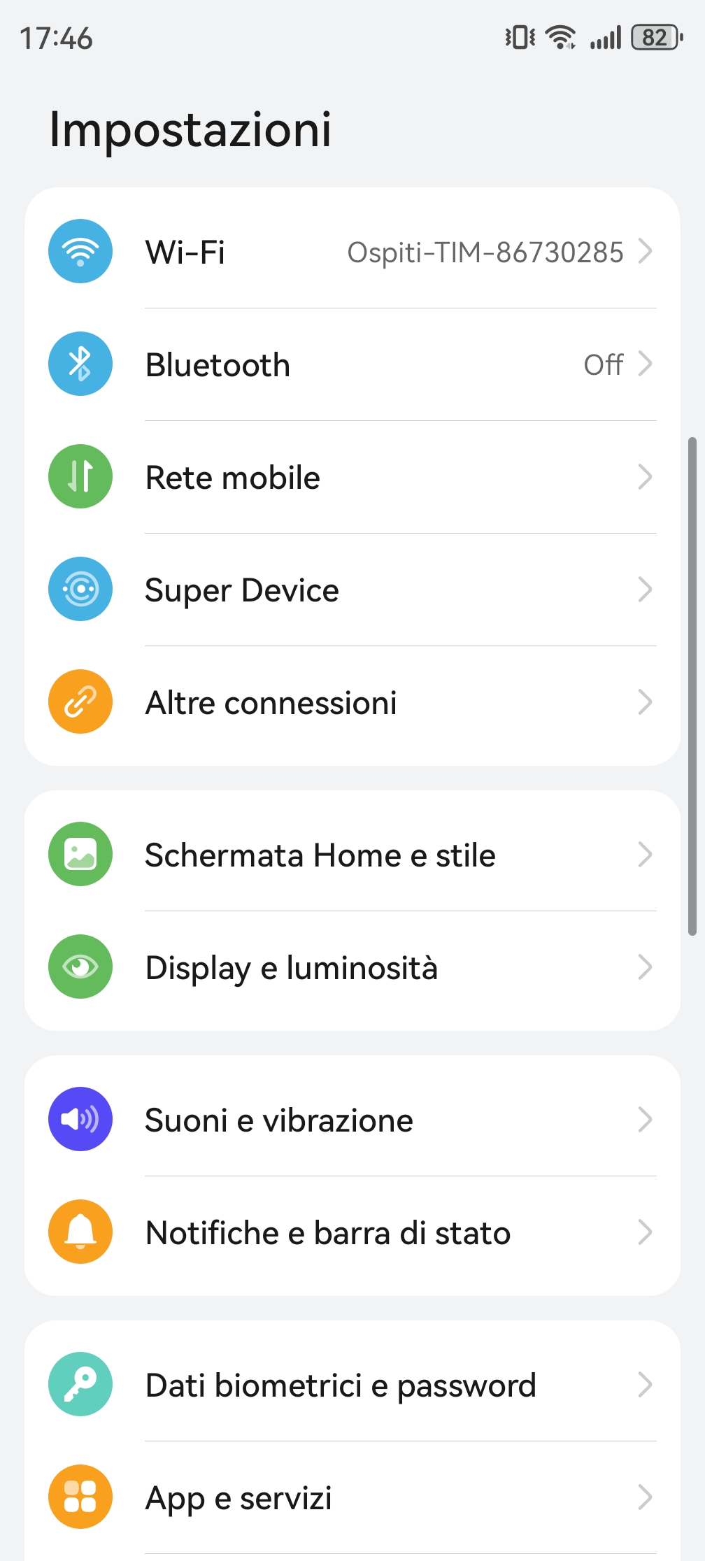 - Rete: 4G (niente 5G nella nostra versione, per ban)