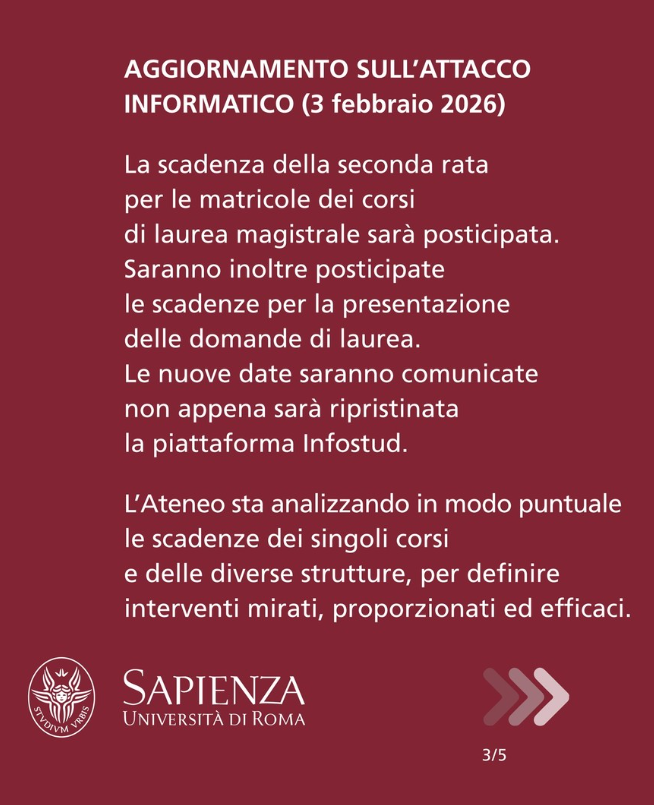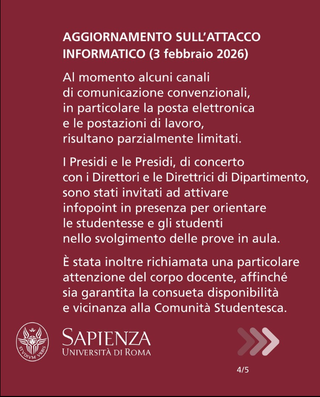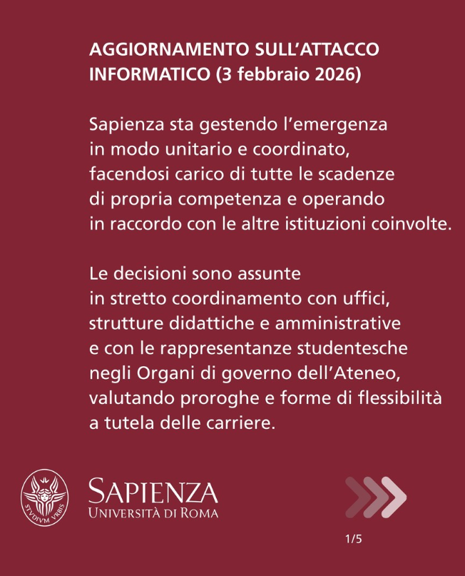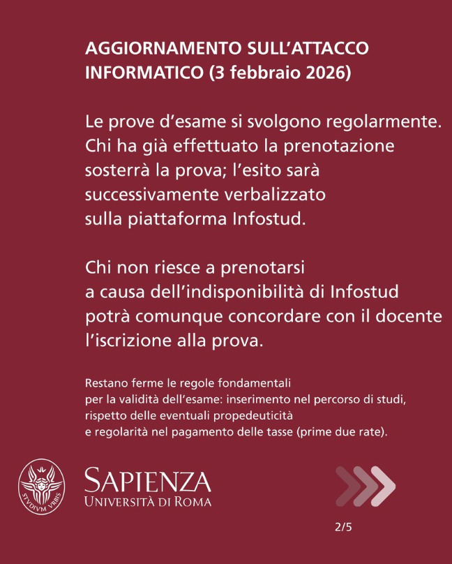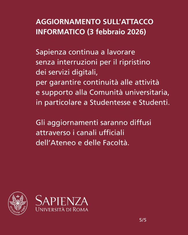 L’impatto operativo è devastante. Il sito pubblico dell’università è offline da giorni, mentre l’intera infrastruttura interna rimane bloccata per precauzione. Studenti non possono prenotare esami, scaricare bollettini, consultare libretti universitari o verbalizzare i voti. Le lezioni proseguono in presenza, ma ogni processo digitale è paralizzato. L’ateneo ha attivato infopoint fisici nelle facoltà e prorogato le scadenze amministrative.