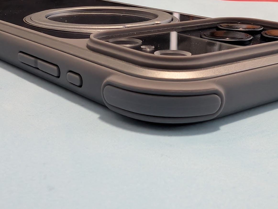 La cover presenta un’apertura precisamente calibrata per il nuovo pulsante Camera Control del nostro iPhone 17 Pro Max. Questo accorgimento permette un controllo fluido e preciso, minimizzando i tocchi accidentali durante l’utilizzo quotidiano. Di conseguenza, gli utenti possono sfruttare appieno le funzionalità fotografiche avanzate senza compromessi.
