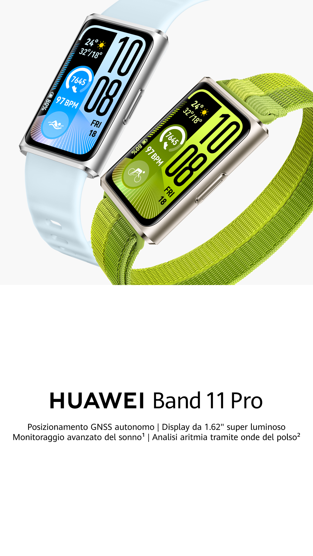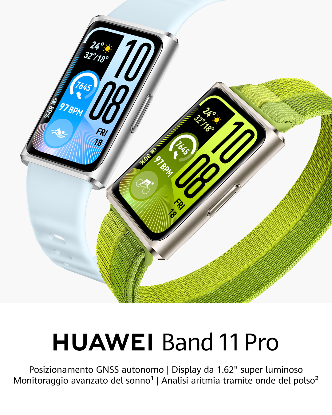 La linea si divide in due modelli, HUAWEI Band 11 e HUAWEI Band 11 Pro. La differenza non è solo nel nome, perché la versione Pro aggiunge funzioni più evolute per l’uso outdoor e una costruzione più raffinata. In ogni caso, il messaggio del brand è semplice: offrire un wearable leggero, facile da indossare tutto il giorno e meno limitato rispetto alle classiche band economiche.