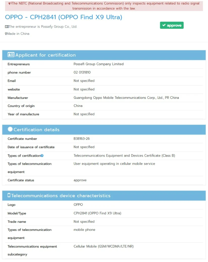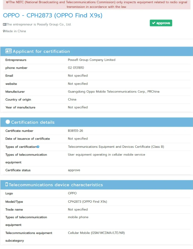 Il processo di approvazione ha coinvolto entrambi i dispositivi in parallelo. Oppo Find X9 Ultra con numero di modello CPH2841 e Find X9s con numero CPH2873 hanno superato il processo di omologazione NBTC thailandese, che come di consueto non rivela dettagli tecnici ma certifica l’identità commerciale dei prodotti.