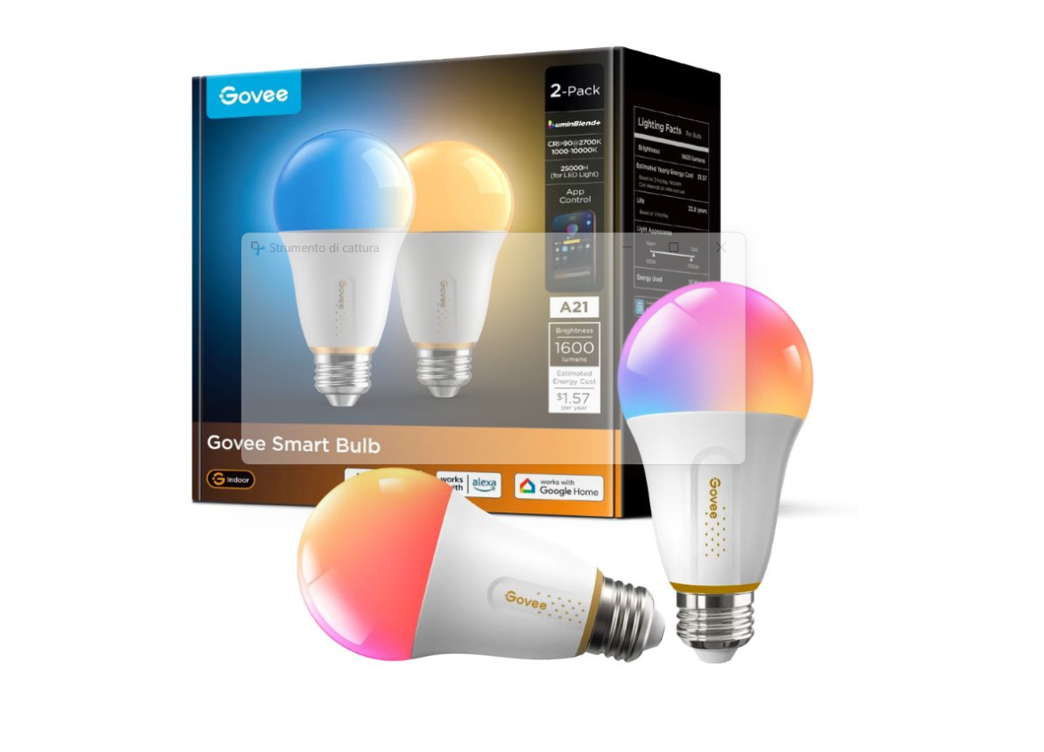 Govee Smart Bulb A21: 1.600 lumen, CRI 90+ e supporto Matter per la casa intelligente