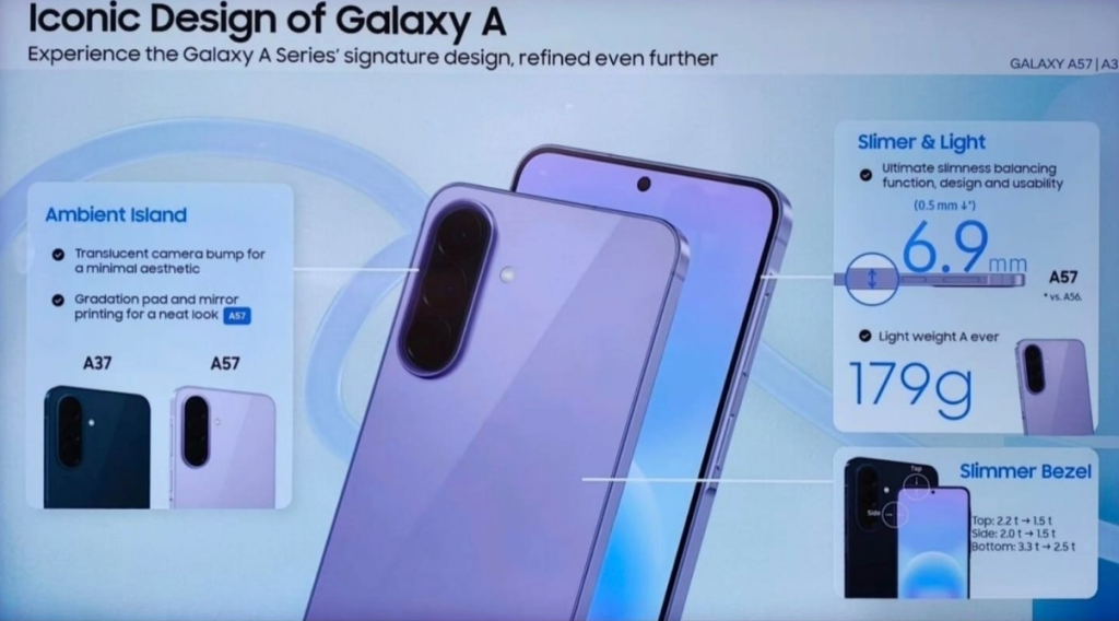 Galaxy A57: 6,9 mm di spessore, Exynos 1680 e camera di vapore potenziata per la fascia media