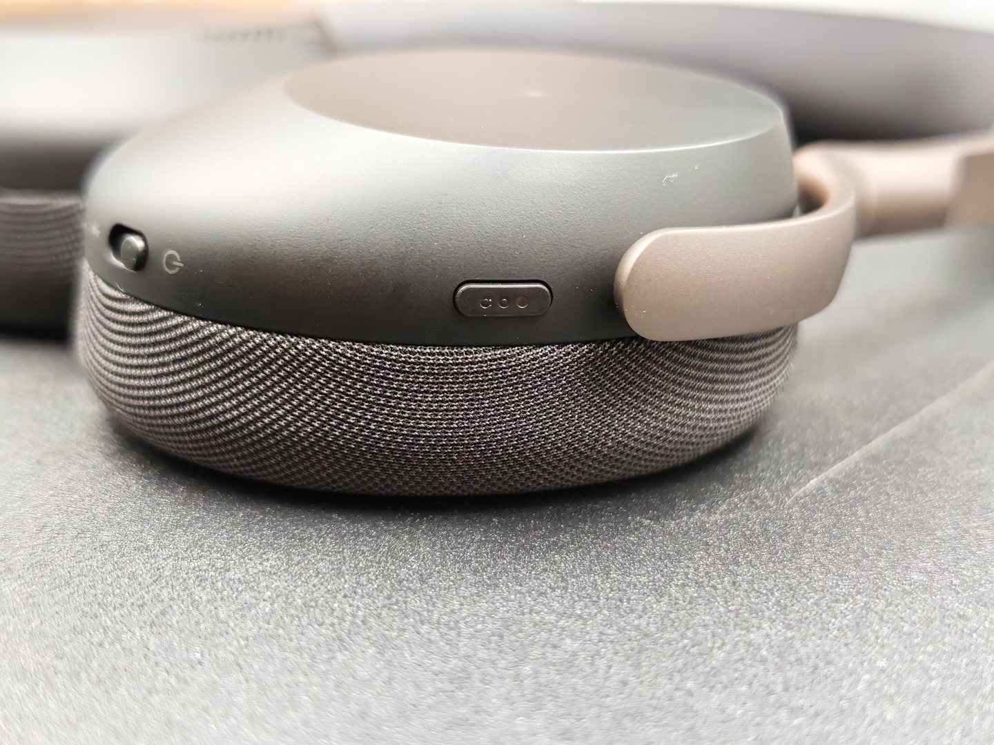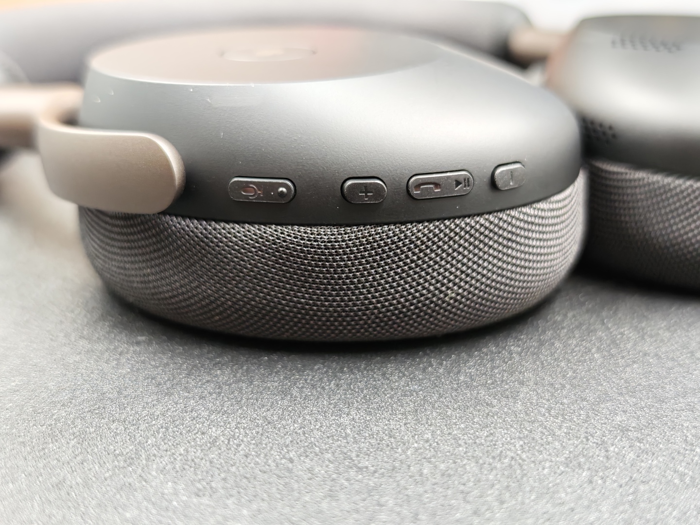 Molto bene anche la scelta dei rivestimenti. Qui Jabra abbandona la similpelle e passa a un tessuto forato, usato sia sui padiglioni sia nella parte superiore dell’archetto. È una soluzione che convince, perché migliora la sensazione al tatto, alleggerisce l’estetica e dà anche un’impressione di maggiore freschezza nell’uso prolungato.
