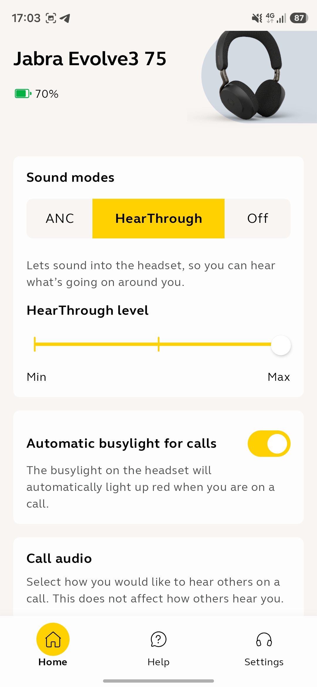 Buona anche la parte software, che qui è più ricca di quanto si veda di solito su molte cuffie con cancellazione del rumore. Lato PC c’è Jabra Direct, mentre da smartphone entra in gioco Jabra+ per Android e iOS. Non servono solo per aggiornare il firmware o cambiare due impostazioni al volo, ma permettono di intervenire in modo abbastanza profondo sull’esperienza, soprattutto lato chiamate.