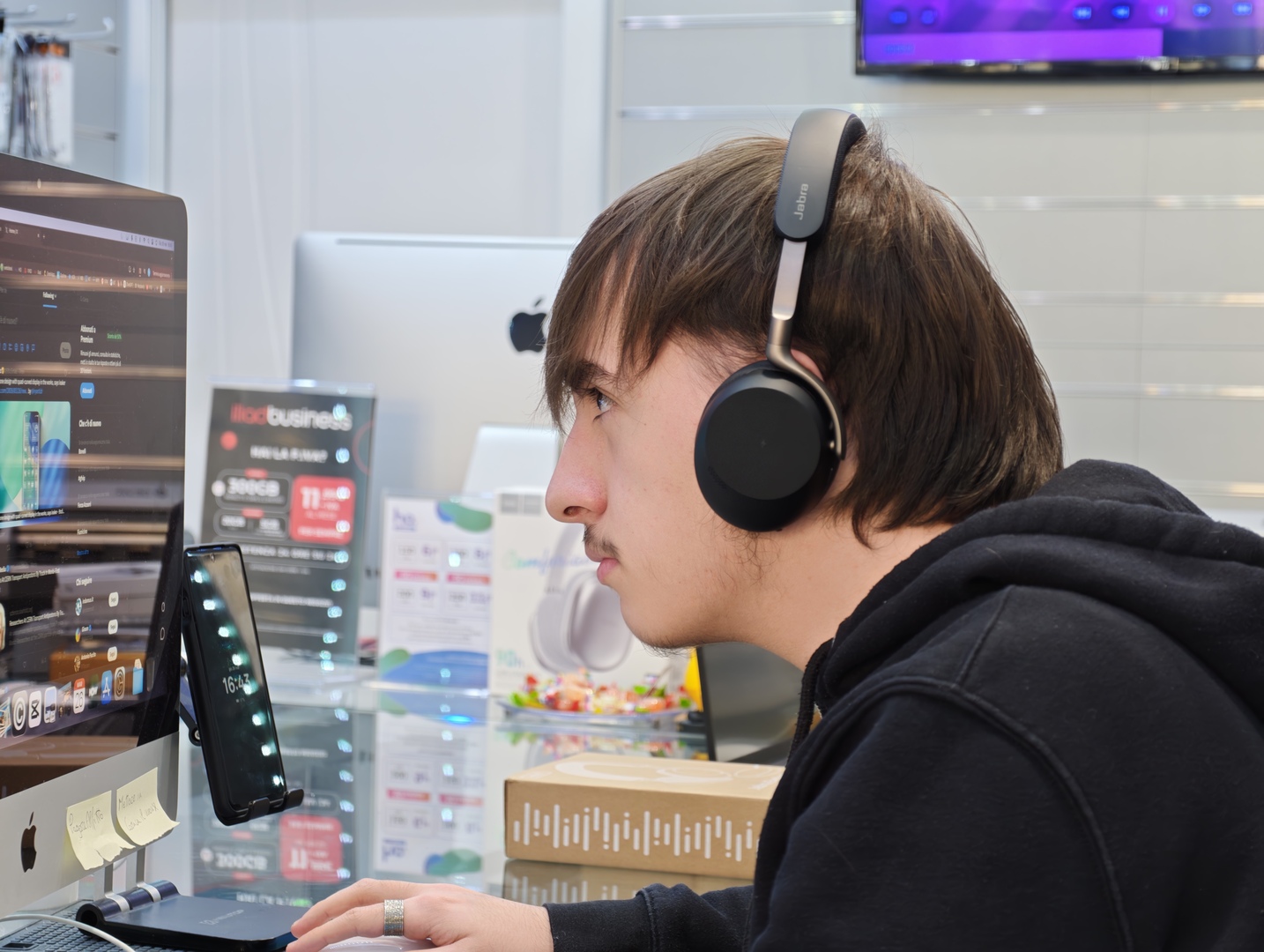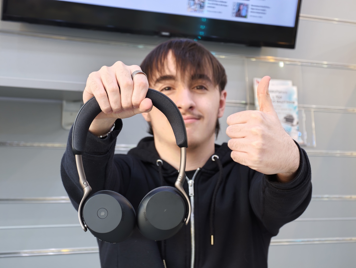 Anche nei momenti più normali della giornata, per esempio una playlist mentre si lavora, un video al volo da smartphone o un podcast durante uno spostamento, Jabra Evolve3 75 si comporta bene proprio perché non complica nulla. Non dà l’idea di essere una cuffia nata solo per la scrivania, e questa è una buona notizia. Ti accompagna nelle call, ma poi resta gradevole anche quando esci dal contesto strettamente professionale.