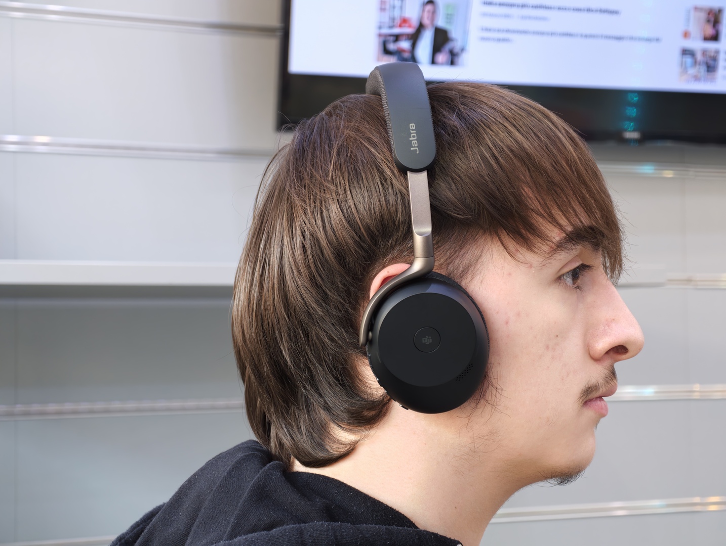 Ed è proprio qui che Jabra Evolve3 75 si comporta da prodotto pensato per il lavoro di oggi. Se usi il PC per Teams, Meet o Zoom e allo stesso tempo tieni lo smartphone collegato per chiamate e contenuti rapidi, tutto diventa più fluido. Quando arriva una chiamata o una riunione, la cuffia si inserisce bene nel flusso senza obbligarti a gestire manualmente ogni passaggio. È un vantaggio pratico, ma anche tecnico, perché riduce attriti inutili e rende il prodotto più trasparente nell’uso quotidiano.