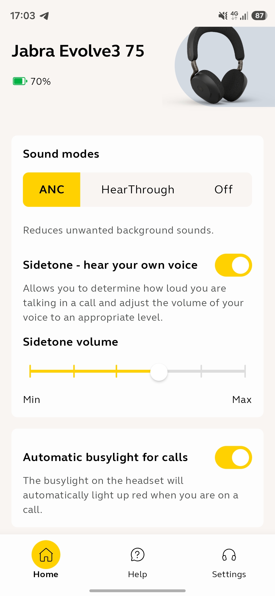 Una funzione molto utile è il Sidetone, cioè il ritorno della propria voce in cuffia durante le conversazioni. Si può regolare su più livelli e, detta in modo semplice, serve a non farti parlare troppo forte quando sei isolato dal rumore esterno. È una di quelle cose che magari chi non usa spesso cuffie da lavoro tende a sottovalutare, ma che nelle call lunghe fa davvero comodo.