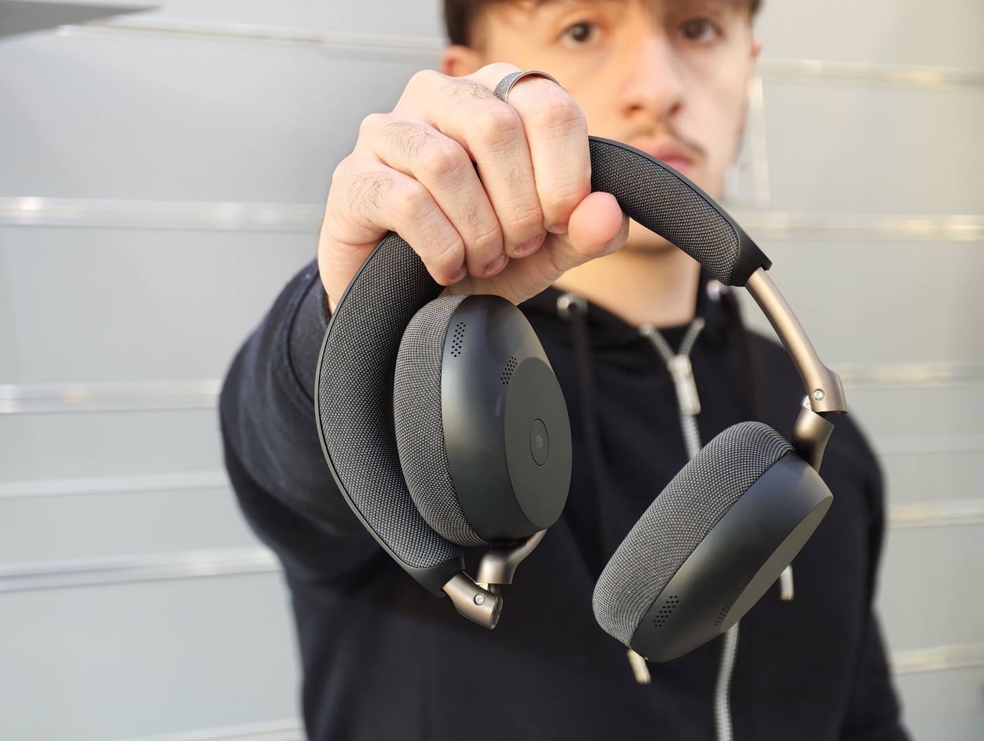 Ed è quello che emerge anche nell’uso reale. In contesti mediamente rumorosi, come traffico urbano normale, corridoi, sale d’attesa o spazi condivisi, Jabra Evolve3 75 si comporta bene e riesce a migliorare davvero la vivibilità del prodotto. Quando invece il caos sale parecchio, l’ANC continua a fare il suo ma non può trasformare questa cuffia in una campionessa di isolamento assoluto. Aiuta, alleggerisce il contesto, ma non annulla il mondo esterno.
