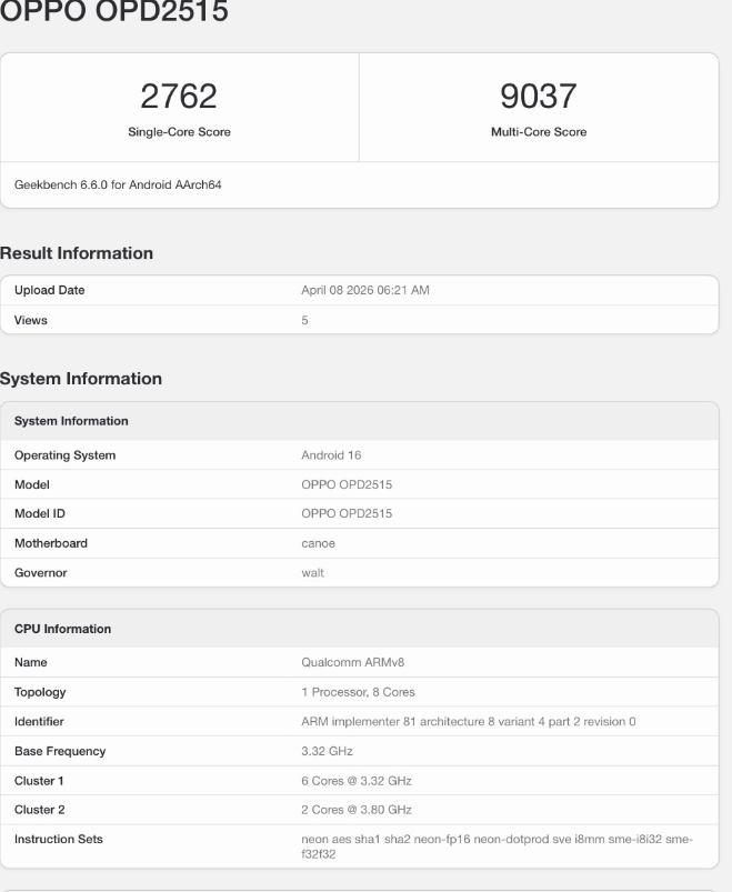 Il passaggio su Geekbench è importante perché dà maggiore concretezza ai rumor. Il tablet Oppo con sigla OPD2515 viene associato proprio a Oppo Pad Mini, e la configurazione emersa conferma un’impostazione da prodotto ambizioso. Il cuore del dispositivo sarebbe infatti il Qualcomm Snapdragon 8 Gen 5, un chip di fascia alta costruito su processo a 3 nm e posizionato appena sotto lo Snapdragon 8 Elite Gen 5.