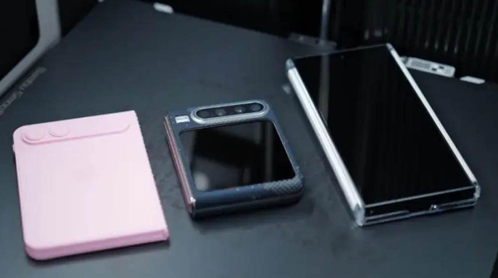 Sul retro è presente una tripla fotocamera alloggiata in un modulo orizzontale, mentre le fotocamere selfie compaiono sia sul display esterno sia su quello interno. Questo dettaglio suggerisce una forte attenzione alla versatilità fotografica.
